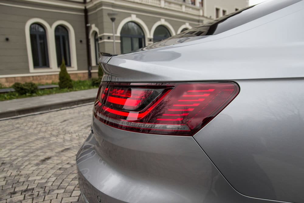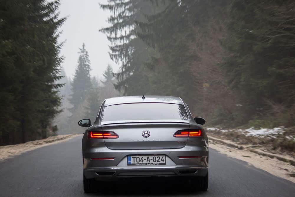 Markantna LED svjetla sa velikom maskom motora koja je razvučena preko cijelog prednjeg dijela izgleda fantastično! Testiran model bio ja sa R-Line paketom opreme koji dodatno naglašva agresivnost i sportski duh Volkswagenove coupe limuzine.