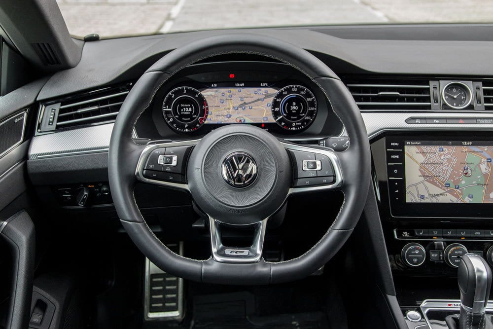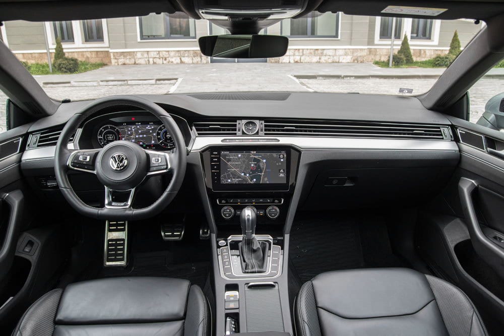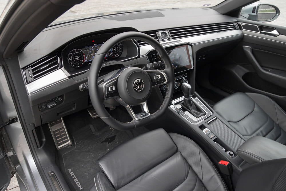 Unutrašnjost putničke kabine donosi očekivana rješenja i sofisticiranu tehnologiju kojom trenutno raspolaže Volkswagen. Dizajn unutrašnjosti Arteona nije daleko odmakao od manjeg Passata, ali se tehnološkim rješenjima jasno se distancirao od manjeg bratskog modela. Ako ste vozili aktuelne Volkswagen modele, kada prvi put sjednete za upravljač Arteona gotovo da odmah znate gdje se šta nalazi i brzo pronalazite vama pogodnu vozačku poziciju.