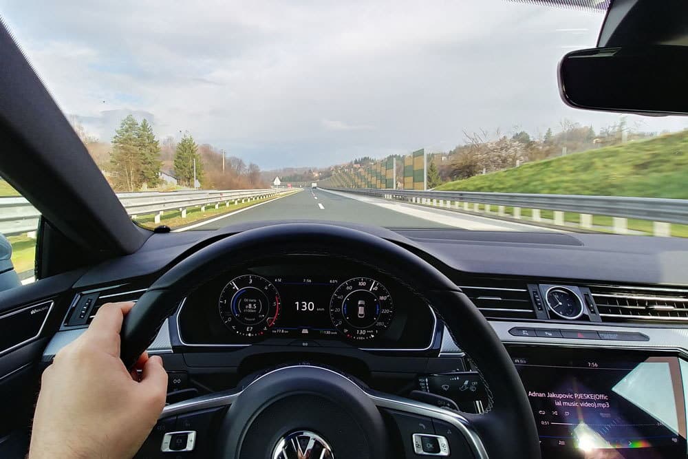 Vožnja Arteona na autoputu je poseban užitak, rekli bi smo da se tu najbolje snalazi. Kada znamo da ima snažan motor uparen sa odličnim mjenjačem, dobru aerodinamiku, te DCC adaptivnu regulaciju ovjesa koja se može prilagoditi situaciji u vožnji: eco, komforno, normalno ili sport, onda je svaki prijeđeni kilometar na autoputu pravi užitak. Poseban užitak imate u sport režimu kada se na zvučnom sistemu automobila reprodukuje sintetički generisan zvuk motora.