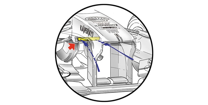 Sličnu instalaciju u 2011. je imao Red Bull Racing na svom RB8. Njihov usisnik bio je smješten na gornjoj strani nosa, a Adrian Newey je tvrdio da prvenstveno ima estetsku ulogu.