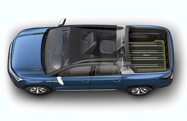 Novi Volkswagen Tarok kako je već najavljeno manji je od Amarok modela i ima dužinu od 490 cm. Njegova kabina ima dva reda sjedišta i postavljen je na MQB platformu.