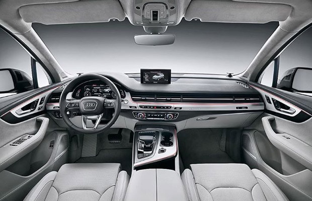 Novi Audi Q7 ima znatno elegantniju unutrašnjost od prethodnika. Masivni kokpit stvar prošlosti. U novom Q7 prevladava prozračna sportska atmosfera. Unutrašnjost novog Audi Q7 odlikuje čist dizajn, kombinovan sa visokom tehnologijom. Umjesto analognih instrumenata postavljen je virtualni kokpit koji je prvi put korišten u novom TT modelu. Osim toga, nov Q7 dobio je novi MMI čij je ekran osjetljiv na dodir.