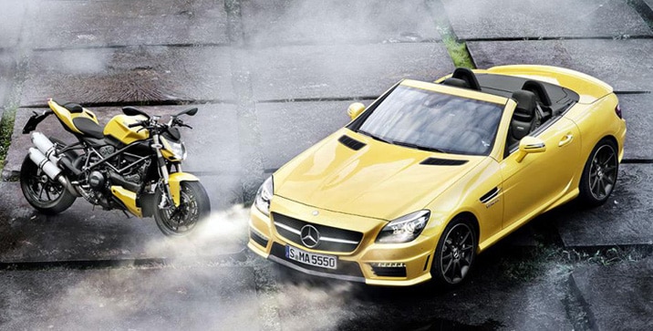Mercedes SLK 55 AMG i Ducati Streetfighter 848