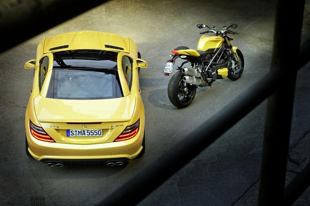 Na bolonjskom sajmu motocikala Mecedes i Ducati zajednički su predstavili svoje modele. Za tu priliku Mercedes je posebno pripremio svoj kabriolet SLK AMG kojeg je obojio u specijalnu žutu boju. Radi se žutoj boji u kojoj je dostupan novi Ducati Streetfighter 848 koji je svjetsku premijeru imao na EICMA salonu u Milanu novembra 2011. godine.