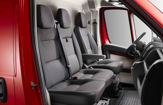 Vrhunska udobnost sjedišta i potpora tijelu za najbolje radne uvjete. Sjedala novog Citroën JUMPER opremljena su naslonima za glavu koji se namještaju po visini i vade, naslonom za leđa prilagodljivog nagiba, naslonom za ruku i namještaju se uzdužno i u leđnom dijelu. Vozačevo sjedalo može imati promjenjivu amortizaciju koja se može regulirati ovisno o vozačevoj masi, od 40 kg do 130 kg.