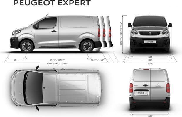 Expert dijeli platformu, karoserijske elemente, kao i sigurnosne sisteme sa modelom Traveller, te je ocijenjenim sa 5 EuroNCAP zvjezdica za sigurnost. Na raspolaganju će biti tri dužine karoserije i dva međuosovinska rastojanja, u različitim karoserijskim izvedbama. Model sa oznakom Compact ima dužinu od 4.606 mm , sa međuosovinskim rastojanjem od 2.952 mm, Standard ima dužinu od 4.956 mm), a Long 5.308 mm, a ova dva imaju međuosovinsko rastojanje od 3.275 mm, ali različite stražnje prevjese.