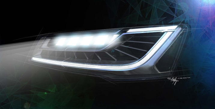 Svjetla koja su prikazana na fotografiji bit će integrisana u novi Audi A8. Audi Matrix LED tehnologija se sastoji od LED svjetala snažnog snopa koje je podjeljeno u brojne pojedinačne male diode koje rade zajedno sa sočivima ili reflektorima povezanim u seriji.