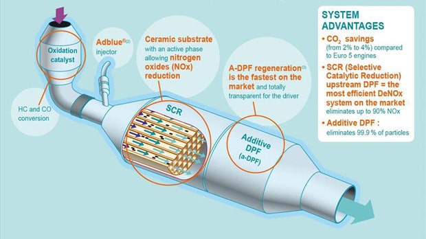 BlueHDi tehnologija neprekidno ograničava emisiju onečišćenih tvari pomoću tri mehanizma uklopljenih u ispušni sistem: oksidacijski katalizator, filtar čestica (FAP), aditiv koji tretira broj i masu čestica, Selektivna Katalistička Redukcija (SCR) smještena uzvodno u FAP-u, koja omogućava uklanjanje dušikovih oksida (NOx) koje ispušta motor. Grupa PSA registrirala je stotinu patenata za BlueHDi tehnologiju.