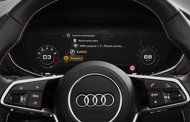 Nakon instalacije besplatne Audi aplikacije „MMI connect“ na smartphoneu Online Media Streaming vozaču nudi pristup ponudama muzičkog portala „Napster“ i radio-usluge „Aupeo!“. Tako Audi kupci mogu prenositi na MMI ukupno skoro 20 miliona muzičkih naslova i više hiljada audio knjiga (knjiga za slušanje) u MP3 formatu. Smartphone se za ovo mora spojiti sa MMI-om putem WLAN-a. Korištenje je potpuno integrisano.