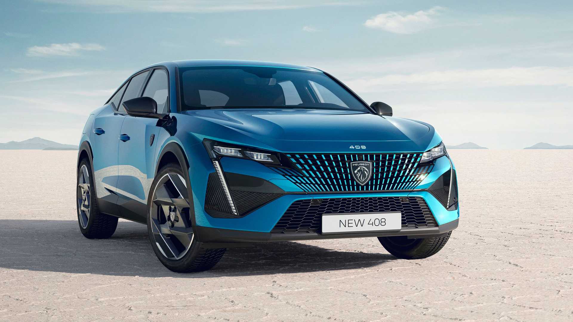 Prednja rešetka odvažan je simbol modela 408. Sve je podređeno novom amblemu Marke u kojem se krije i radar potreban za rad mnogih sistema za pomoć u vožnji. Zahvaljujući boji, prednja rešetka stapa se s ostatkom prednjeg odbojnika, što je znak promjene u generaciji i elektrifikacije game PEUGEOT. Veliki crni usisnici dio su dizajnerske teme prednjeg kraja i vizualno naglašavaju njegovu širinu i robusnost. Oni okružuju i štite svjetla u obliku očnjaka povezujući crne zaštitne elemente koji okružuju karoseriju i poboljšavaju vidljivost svjetlosnog potpisa zahvaljujući kontrastu.