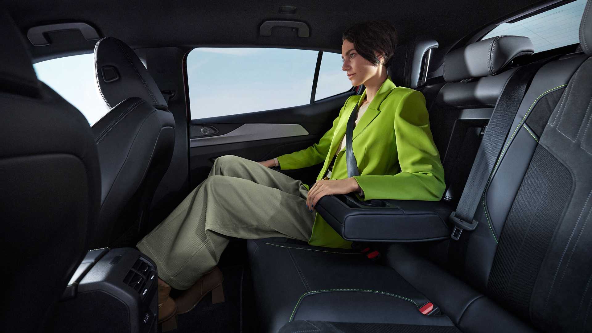 Dizajn sjedišta osmišljen je tako da se naglasi kvaliteta korištenih materijala: prošarana tkanina, tehničke niti, alcantara, perforirana koža i obojena Nappa koža. U inačici GT sjedišta su ukrašena posebnim koncem u boji minerala adamit koji krasi i armaturnu ploču, obloge vrata i elemente središnje konzole s pjenastom podstavom.