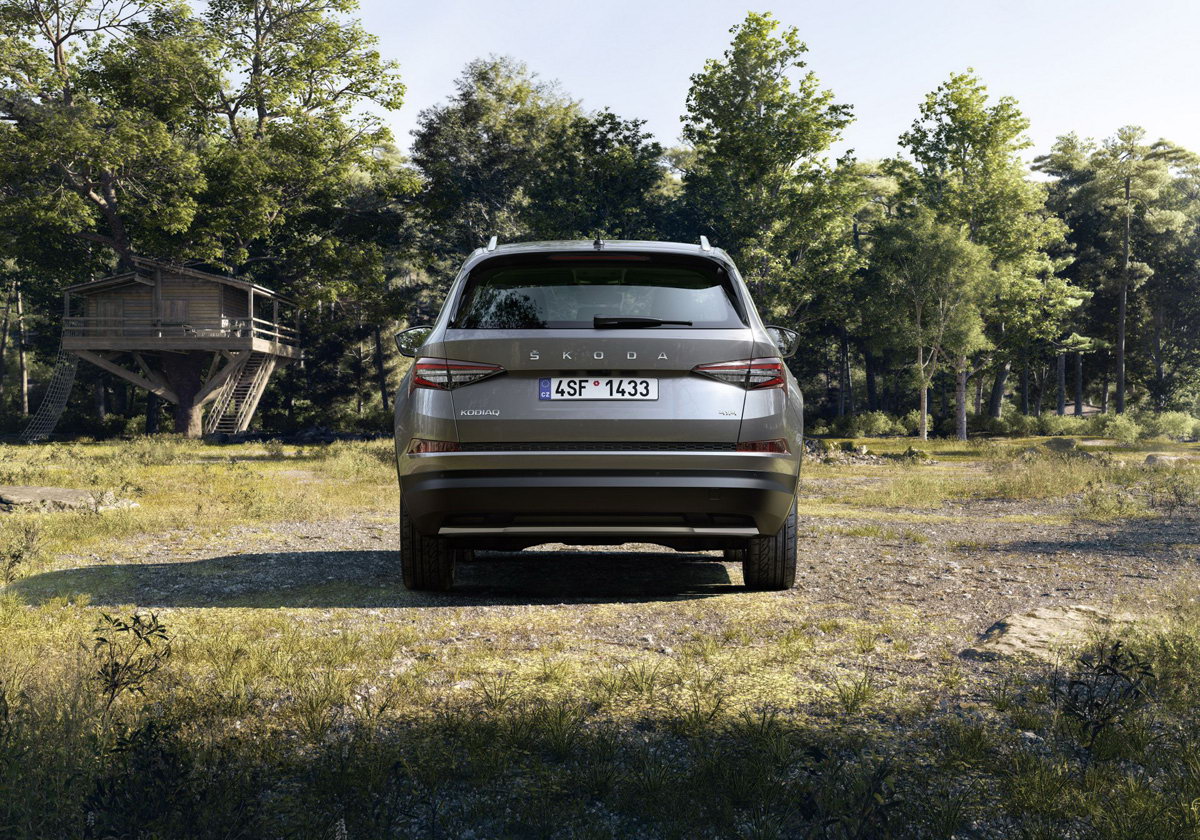 Novi zadnji spojler u sjajnoj crnoj boji čini da se karoserija KODIAQ-a čini dužim nego što zapravo jeste. Zajedno sa bočnim rebrima zadnji spojler poboljšava aerodinamiku automobila, smanjujući tako emisiju CO2. Novi KODIAQ dobio je i tanka, oštro dizajnirana zadnja svjetla. Standardno imaju potpuno LED tehnologiju čak i u Active paketu opreme. Od opreme Ambition prema gore, također dolaze s dinamičkim pokazivačima pravca i animiranim efektom dobrodošlice.