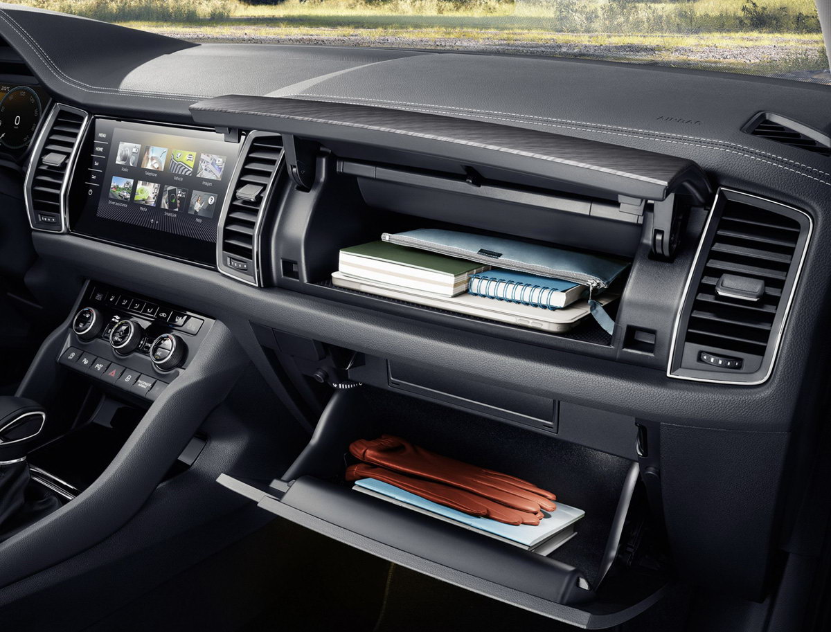 Do varijante L&K, KODIAQ-ov višenamjenski kožni upravljač dolazi u novom ŠKODA dizajnu i ima dva kraka. Sportski kožni upravljač sa tri kraka dostupan je kao opcija, što je standardna oprema u varijantama SPORTLINE i RS. Bogatstvom funkcija vozila, kao i sistemima za pomoć i infotainmenta, može se upravljati pomoću točkova i kontrolnih dugmadi na upravljaču, tako da vozač ne mora skidati ruke s upravljača.