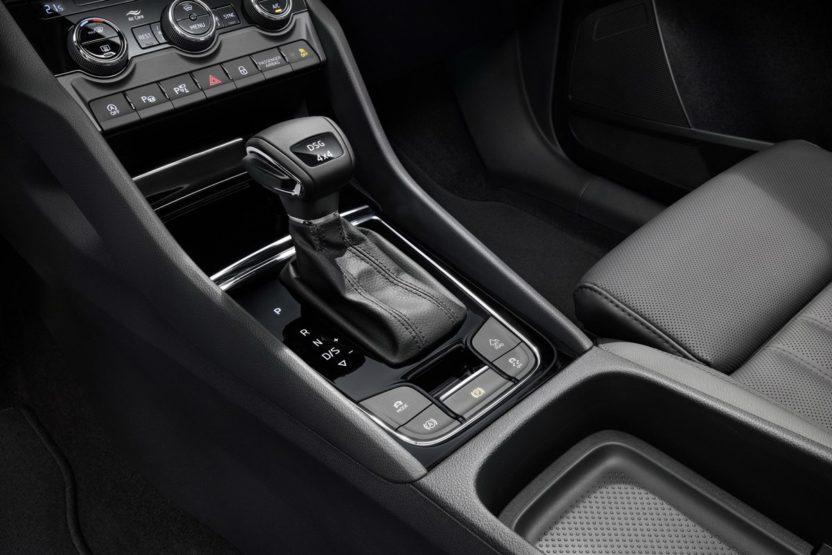 Početni benzinski model pokreće 1.5-litarski TSI motor koji je uparen sa 6-stepenim ručnim menjačem i pogonom na prednje točkove. Automatski 7-stepeni DSG mjenjač dolazi standardno za sve ostale varijante,a pogon na sva četiri točka standardan je za KODIAQ-ove motore koji proizvode 190 KS ili više.
