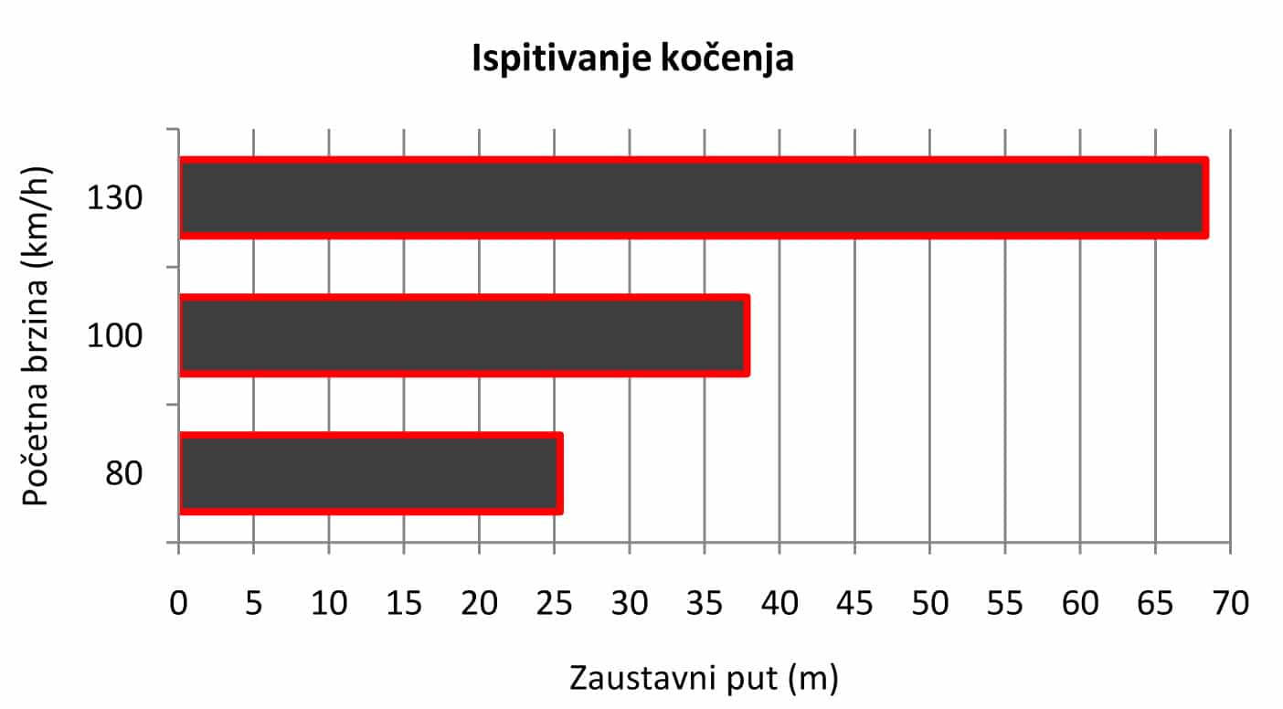 Imajući u vidu masu praznog vozila (spremnog za vožnju) od 1430 kg, moramo reći da su ovi rezultati svake hvale vrijedni! Po pitanju ispitivanja kočenja, možemo reći da i u ovoj disciplini Peugeot 508 može služiti kao primjer. Zahvaljujući odličnom kočionom sistemu kojeg su činili sva 4 kočiona diska (prednji 304x28mm, zadnji 290×12 mm), ABS i REF (elektronska raspodjela sile kočenja), sa brzine od 100 km/h do potpunog zaustavljanja je bilo potrebno 37,84 m, odnosno 68,38 m sa brzine 130 km/h. Stazu slalom testa, sa 4 osobe u vozilu, prolazio je prosječnom brzinom od 62,14 km/h bez ikakvih tendencija ka gubljenju kontrole nad vozilom što je jedna od činjenica da su progresivni elektro-hidraulični upravljački sistem i ovjes savršeno prilagođeni vozilu.