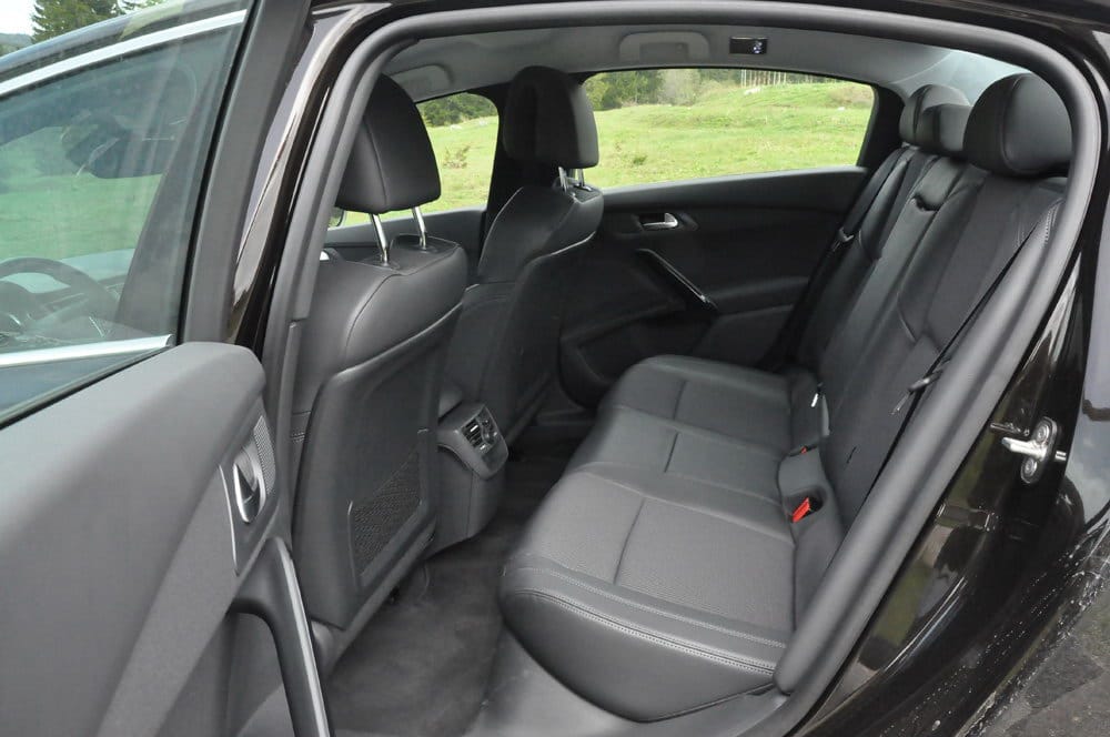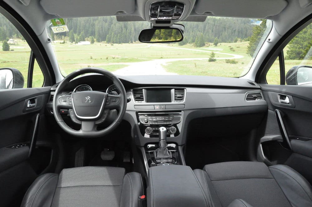 Ponuda prostora u automobilu je bez premca kada je u pitanju D-segment automobilske klase. Na prednjim sjedalima ugodno će se smjestiti vozači i suvozači visine i do dva metra. Sjedišta su presvučena u kombinaciji kože i platna, kada je u pitanju njihova udobnost, ona su nestandardno tvrda za Peugeot ali su po nama idealan omjer između njemačke tvrde profilisanosti i francuskog ugođaja. Prednja sjedišta omogućavaju brz pronalazak idealne pozicije, u gotovo bilo kakvom položaju sjedišta da su, osjećat će te se udobno. Oba prednja sjedišta podesiva su po visini/dubini, dok vozačev dio ima električno podešavanje za lumbalni dio leđa. Njihovim povlačenjem unatrag stiče se utisak da se vozite u još većoj limuzini. Za zadnju klupu nema puno priče, dovoljno je reći „direktorski ugođaj“. Mala zamjerka na zadnju klupu ide na visinu, gdje putnici preko 190 cm neće imati najveći mogući komfor na krajevima zbog spuštenog krova, ali im to neće im praviti probleme u vožnji.