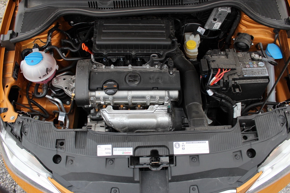 Iako su u restilizovanoj Ibizi dostupni savremeni TSI benzinski i TDI common rail dizelski motori, naš testni model pokretao je dobro poznati 1.4-litreni atmosferski benzinac sa 85 KS i 132 Nm okretnog momenta. Iako se radi o motoru koji je dugo na tržištu on je još uvijek dobro rješenje za ovakav tip automobila. Odlikuje ga miran, tih i uglađen rad a jedna od glavnih odlika mu je i elastičnost pa automobil možete voziti bez problema i u dizelskim niskim okretajima. Kada su su performanse u pitanju do 100 km/h Ibiza ubrzava za 12,2 sekunde, a maksimalna brzina iznosi 175 km/h. Zahvaljujući uglađenosti motor ravnomjerno ubrzava sve do crvenog polja na pokazivaču okretaja koji počinje na 6.000.