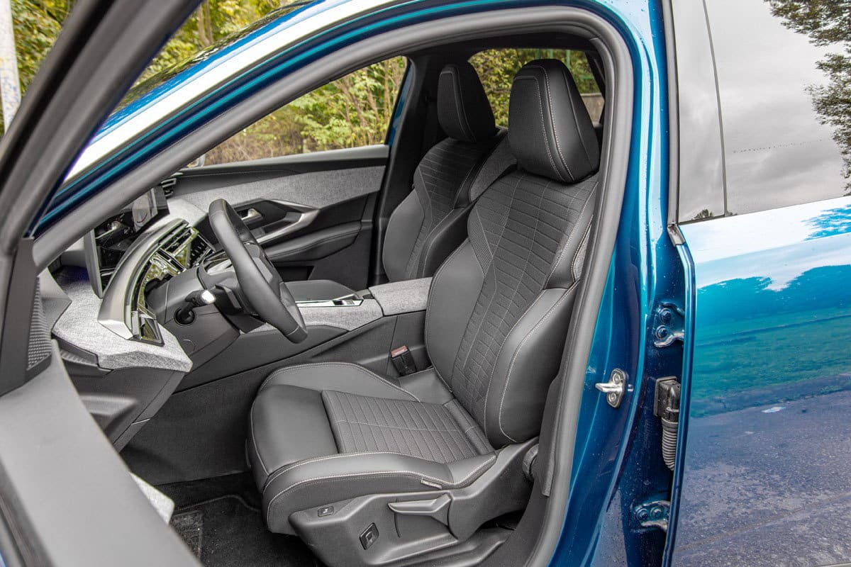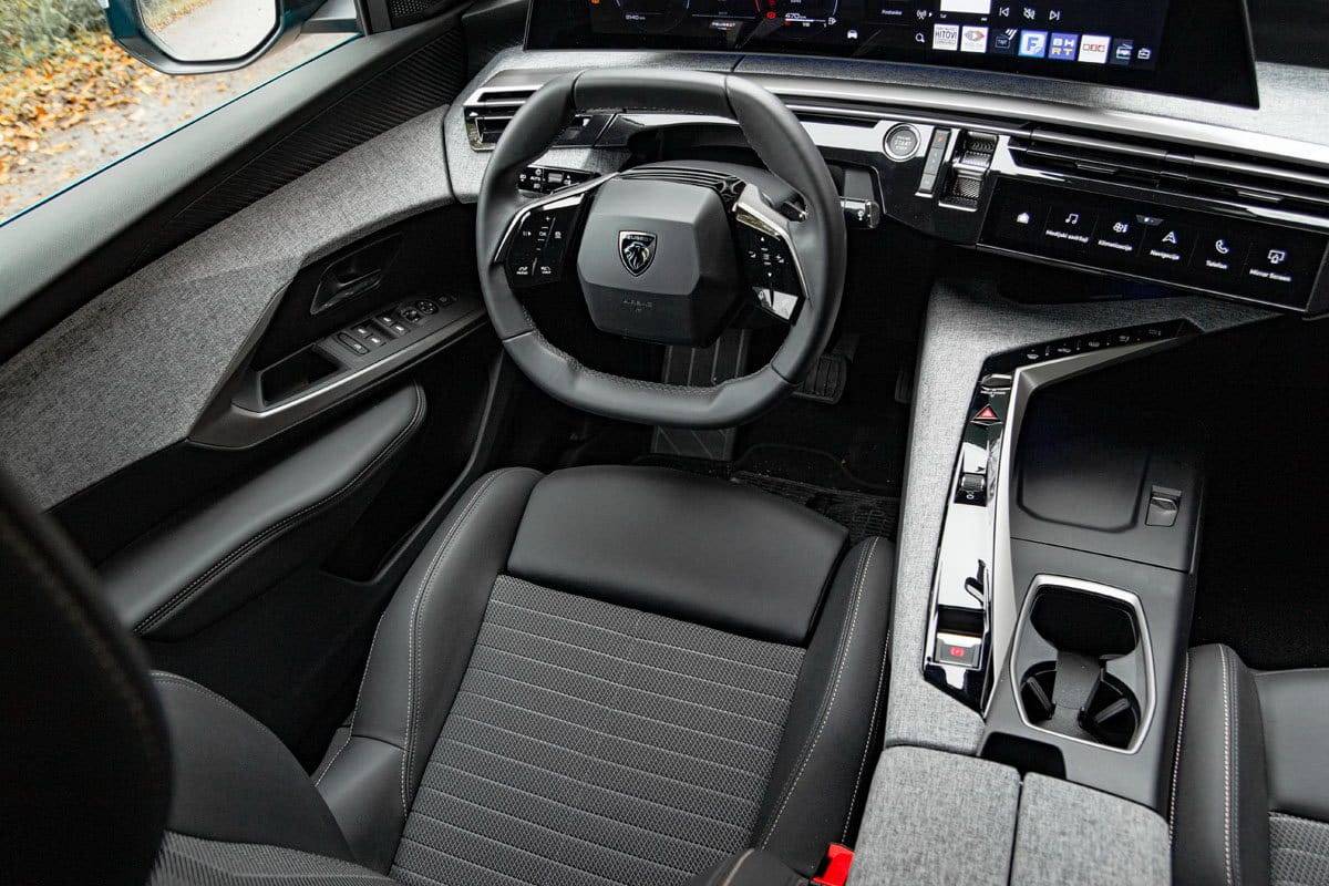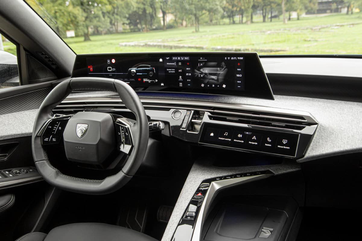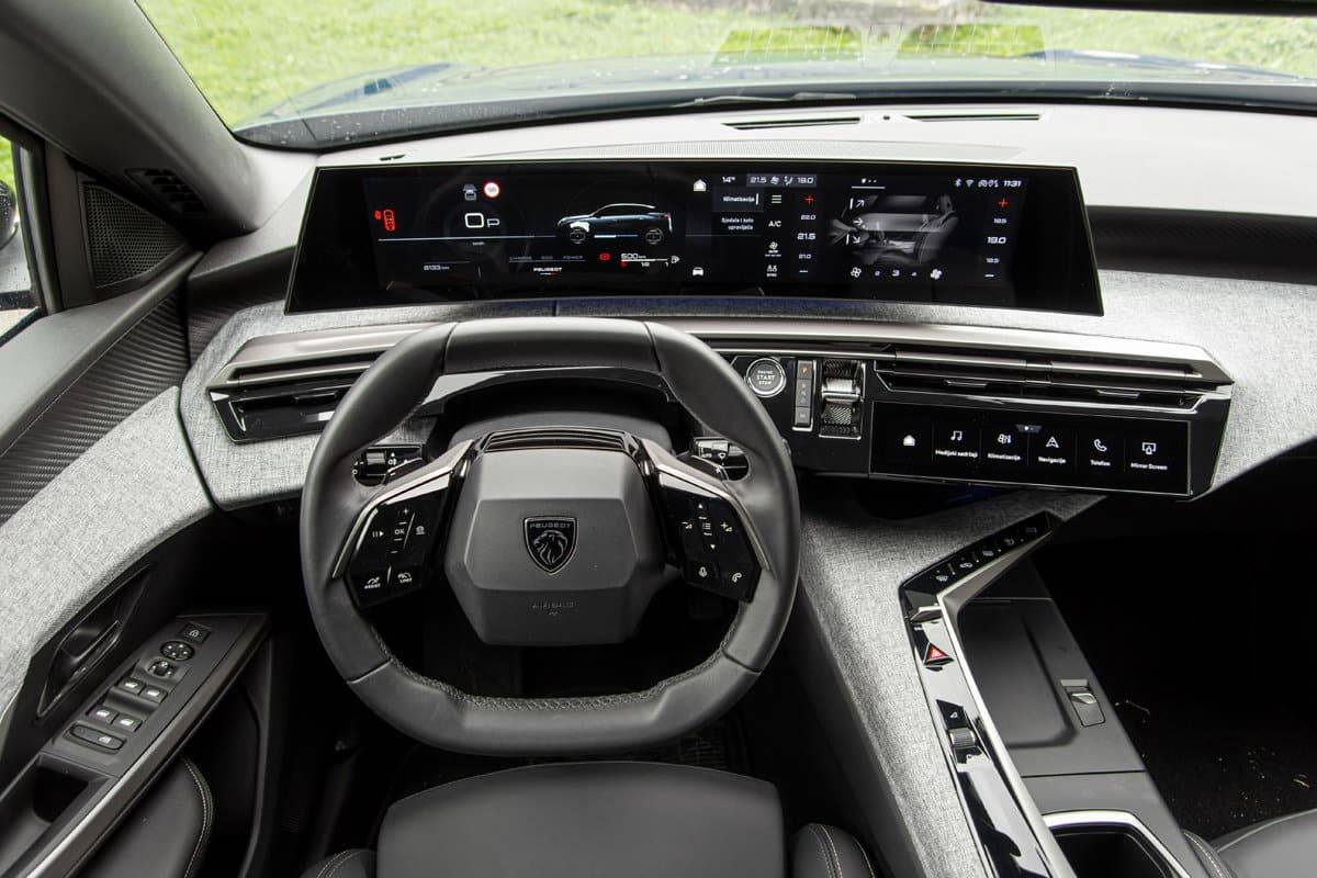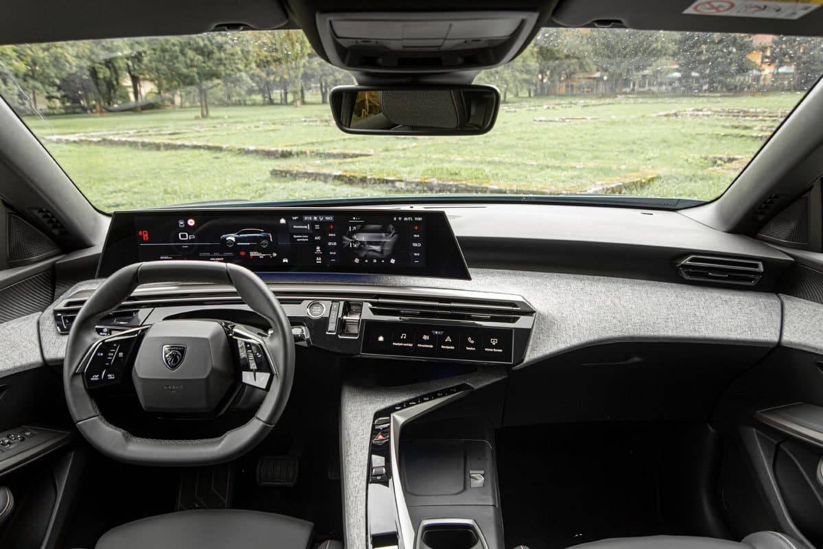 Unutrašnjost otkriva novu generaciju Peugeotovog i-Cockpit rješenja koje dolazi u definitivno najboljem izdanju do sada. Ovo jedinstveno rješenje digitalnih instrumenata koje je prvi uveo Peugeot također je prošlo kroz nekoliko generacijskih tranzicija koje su ga uvijek činile boljim od svog prethodnika. Nova generacija i-Cockpita zadržala je osnovnu ideju, visoko podignuti instrumenti i mali upravljač, ali sada dolazi sa zakrivljenim 21 inčnim HD panoramskim ekranom. U ovom rješenju u jednu cjelini spojeni su digitalna instrument tabla i centralni ekran osjetljiv na dodir. Slobodno možemo reći – konačno – originalno i svrsi shodno rješenje, jer danas proizvođači se nadmeću u postavljanju bespotrebno velikih centralnih ekrana koji su prešli i granicu dobrog ukusa.
