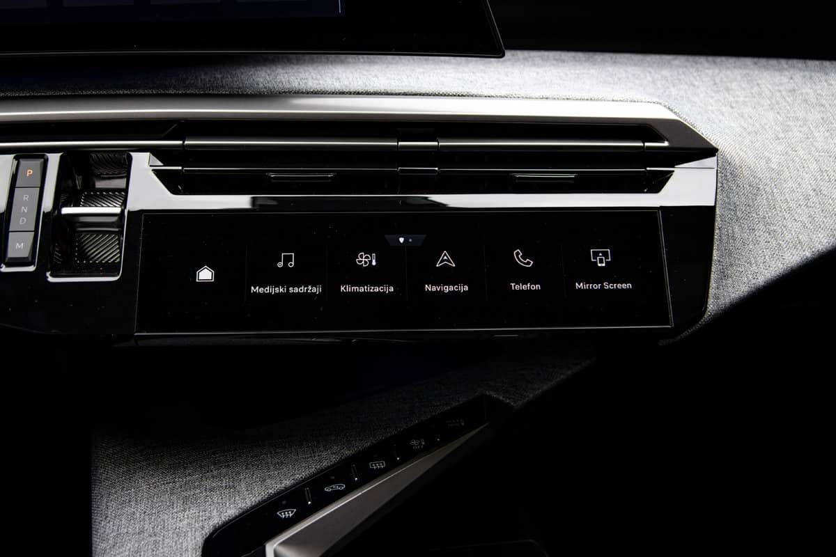Koncept instrument table je novi ali neka dobra tehnička rješenja već su viđena u novom 408 modelu (test modela 408 možete pročitati OVDJE), a riječ je kombinovanju digitalnih komandi sa pravim fizičkim prekidačima kako bi se došlo na najbolji način do simbioze ova dva tipa komandi. Na centralnom dijelu instrument table ostale su i-Toggles dodirne kontrole koje također možete prilagoditi svojim potrebama sa 10 vama najvažnijih prečica – npr. navigacija, ventilacija, audio sistem, telefonija, postavke vozila itd.
