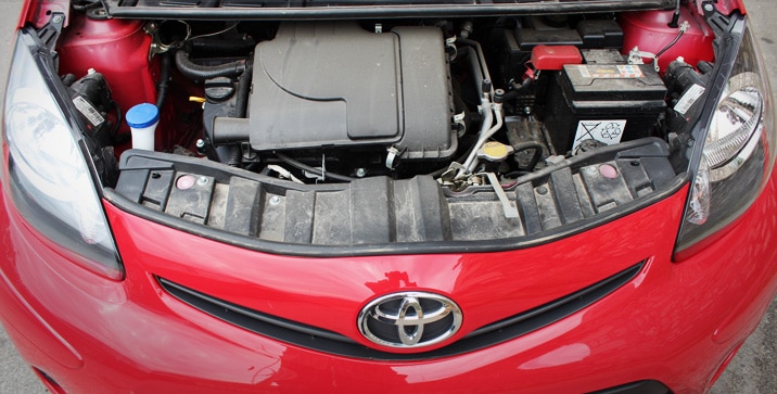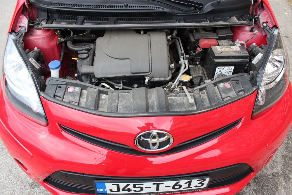 Za pokretanje testnog modela bio je zadužen već dobro poznati VVT-i 1.0-litreni trocilindrični benzinac koji razvija 68 KS pri 6.000 okr./min i 93 Nm okretnog momenta, koji je dostupan pri 3.000 okr./min. Dobro poznata VVT-i tehnologija motoru ovog automobila omogućava dvije vrlo važne osobine, dobru elastičnost i malu potrošnju! Motor bez problema pokreće ovaj automobil i iz najnižih okretaja, bez znakova preopterećenja, a ni visoki okretaji nisu mu mrski. Motor je uparen sa petostepenim ručnim mjenjačem koji ima kratke i precizne hodove, a također i on nosi zasluge za dobru elastičnost motora i nisku potrošnju goriva.