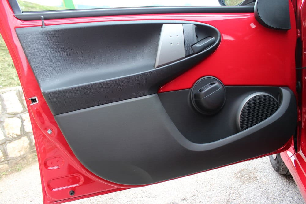 Također, vidljive su još neke uštede, pa tako na vozačevim vratima imamo samo prekidač za jedan električni podizač stakala, prozori zadnjih vrata otvaraju se na „leptir“ sistem, na instrument tabli imate samo pokazivač brzine i pređenih kilometara, te nedostatak bilo kakvog serijskog audio uređaja u paketu opreme kao što je bio testni model. Ipak ono što se mora pohvaliti jeste dolazak serijskog ručnog klima uređaja, te vrlo dobra zvučna izolacija. Iako automobil ne obiluje velikom izolacijom, u kabini se ne prenosi veliki broj decibela buke i pri većim brzinama. Ono što nas je svakako pozitivno iznenadilo jeste da i prilikom gradske vožnje sa otvorenim prozorima u kabini nema velike buke od vjetra, tačnije ako su prozori otvoreni do pola, buku koju proizvodi vjetar gotovo je i nema! Detalj vrijedan spomena za one koji preferiraju vožnju bez klima uređaja.