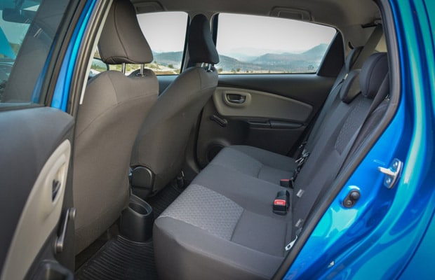 Sjedišta novog Yarisa blago su profilisana tako da neće stvarati problem ni krupnijem vozaču i suvozaču, ali će ipak pružiti i malo potpore u zavojima prilikom malo dinamičnije vožnje. Na prednjim sjedištima donji dio je dovoljno dug, tako da će kod vozača prosječne visine između 170-180 cm noge biti naslonjene gotovo do samih koljena, tako da neće imati osjećaj kako je sjedište kratko. Vozačevo sjedište je podesivo po visini i dubini što omogućava pronalaženje idealne pozicije za sjedenje, dok za tu mogućnost suvozač je uskraćen. Suvozač u vožnji ima osjećaj da se vozi u znatno visočijem automobilu, ali nakon malo duže vožnje izvan grada može osjetiti umor zbog nemogućnosti pronalaženja idealne pozicije. Glavne zamjerka na prednja sjedišta ide na povećan stepen tvrdoće. Za presvlačenje sjedišta korišteni su kvalitetni materijali, koji su dvobojni.