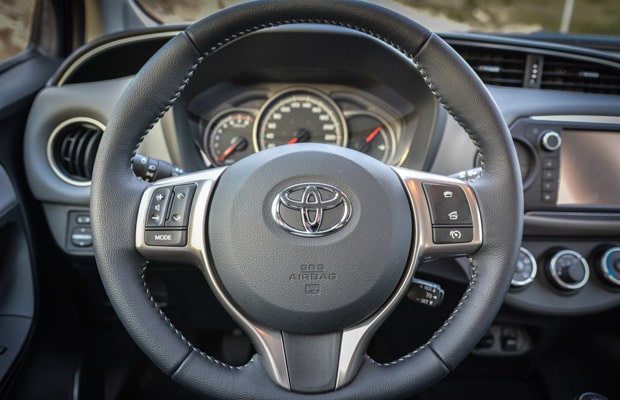 Volan novog Yarisa je jedan od jačih aduta ovog automobila. U trokrakom izdanju, skladan, ergonomski profilisan i moderno dizajniran sa multifunkcionalnim tipkama za upravljanje Toyota Touch & Go sistemom. Presvučen je kožom, a završna obrada je na visokom nivou, bez nabora i zadebljanja, sa preciznim štepom i šavovima. Ono što karakteriše volan Yarisa je izuzetna preciznost, a najmanje pomjeranje dovodi do promjene pravca što je odlika volana na sportskim modelima. Ovakav volan u početku možda se nekom neće svidjeti, ali sigurno da će se s vremenom naviknuti. Potrebno je malo obratiti pažnju pri većim brzinama, jer nema potrebe za jačim zakretanjima volana da bi se promjenio pravac. Jedina zamjerka na volan može ići na nemogućnost većeg izvlačenja prema vozaču. To može stvarati problem visočijim vozačima, jer će im volan biti predaleko.