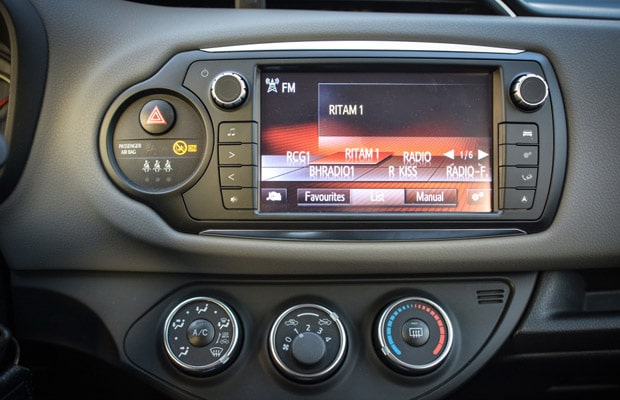 Novi Yaris opremljen je odličnim multimedijalnim sistemom, Toyota Touch & Go 2 koji sada ima 17,7 cm ekran osjetljiv na dodir (prethodni Toyota Touch & Go imao je ekran od 15,5 cm), po čemu je Yaris bio prepoznatljiv i u prethodnom modelu (2011). U njemu su integrisane sve stvari koje će zadovoljiti većinu vozača. Radio i CD player, bluetooth, navigacija i Trip informacije sa putnog računara. Sistem je osjetljiv na dodir pa pored tipki na volanu i na taj način možete birati njegove funkcije. Zvuk je solidnog kvaliteta, a tu je i mogućnost priključivanja USB sticka sa mp3 muzikom.