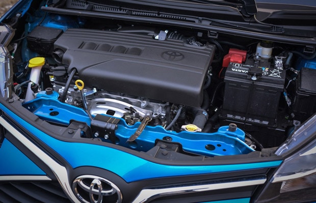 Benzinski atmosferac iz 1.33 ccm razvija 99 KS i 125 Nm obrtnog momenta. Riječ je o Dual VVT-i četverocilindričnom motoru sa 16 ventila koji umjesto zupčastog remena ima lanac. Motor radi mirno i uglađeno, a do 4.000 okretaja ne pokazuje neku veliku živahnost. U rasponu od 1.000 do 4.000 okretaja motor je više orjentisan na štedljivi režim rada. Nakon 4.000 okretaja motor postaje znatno življi kada počinje da odlično vuče, a to je najizraženije prilikom preticanja na otvorenoj cesti. Preticanje iz šestog, petog i djelimično četvrtog stepena prijenosa možete zaboraviti, ili će vam trebati jako puno vremena i prostora da to obavite. Dok u trećoj brzini Yaris će se pretvoriti u respektabilnog „trkača“ pa začuđeni pogledi drugih učesnika u saobraćaju neće biti ništa novo.