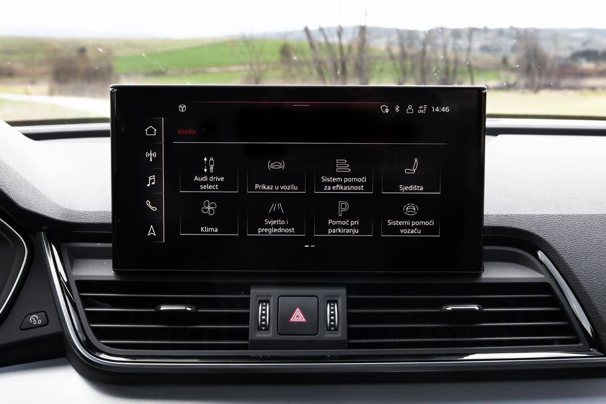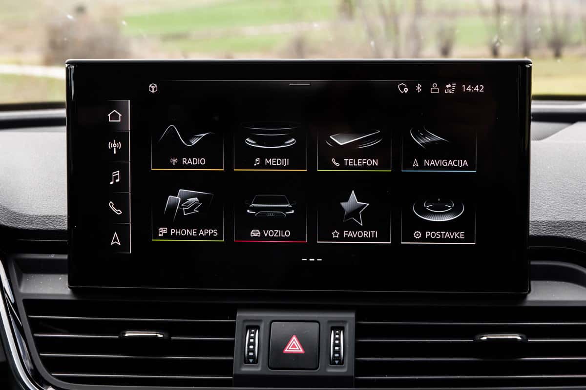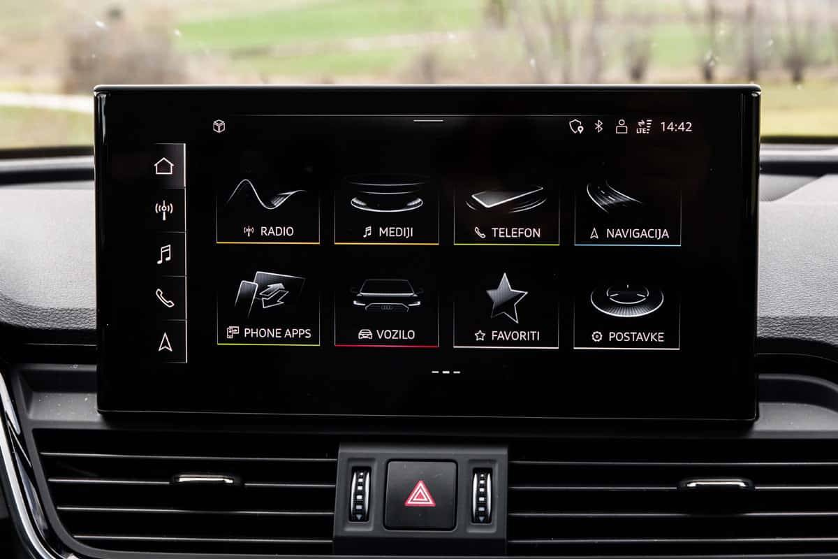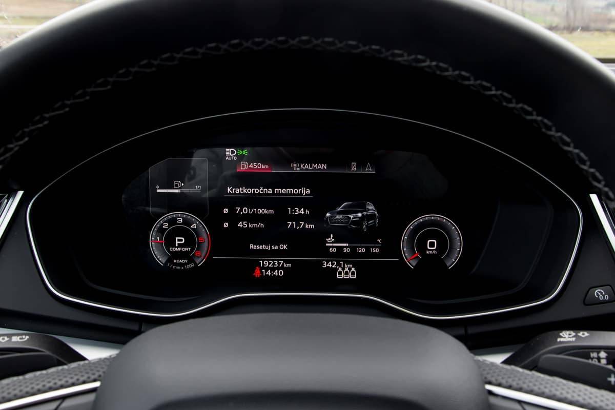 Ispred vozača je digitalna instrument ploča dijagonalne veličine 12,3 inča koja nudi mogućnost personalizacije prikaza i to opet bez mogućnosti nepotrebnog igranja. Jednostavnim pritiskom na jednu od tipki volana mijenjate već fabrički kreirani prikaz, pa tako možete izabrati analognu interpretaciju kazaljki ili preko cijelog ekrana kartu navigacionog sistema. U svakom slučaju jednostavan prikaz, jednostavna grafika, ali sa svim potrebnim informacijama. U istoj ravni nalazi se i centralni ekran MMI sistema (10,1 inč dijagonalne veličine) koji je osjetljiv na dodir. Veličina ekrana je optimalna i zaista ne bi bilo smisla da su njegove dimenzije veće, što je danas potpuno nerazumljiv trend – postavljanje ogromnih centralnih ekrana dok se ispred vozača postavljaju minimalistički ekrani.