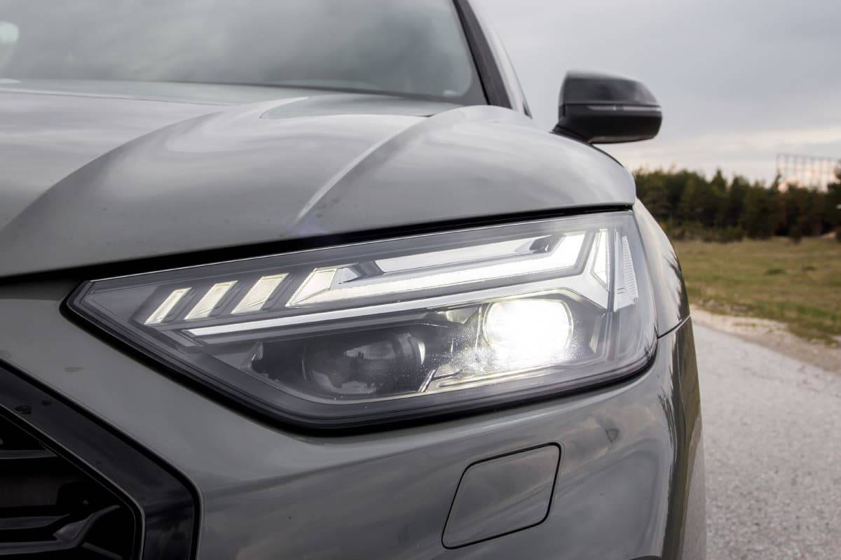 Testni model bio je opremljen potpunim LED svjetlima naprijed i nazad koja uz fantastično osvjetljavanje puta, automobilu daju i odličan izgled, a tu su i pozdravni svjetlosni efekti. Naprijed su već dobro poznata LED Matrix svjetla koja su već godinama jedan od zaštitnih znakova marke sa četiri prstena. Sve ukupno gledajući Audi Q5 Sportback S Line sa svojim vanjskim izgledom neće ostati nigdje ne primijećen.