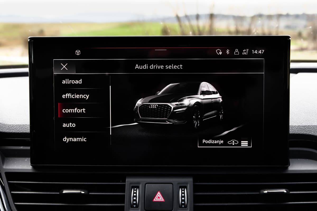 Audi Q5 Sportback ima klasični koncept putničke kabine u kojoj je prije svega fokus stavljen na odličnu ergonomiju i lahkoću korištenja. Ukratko rečeno, to znači da su u velikom broju zadržani pravi fizički prekidači za koje vjerovatno nikada neće biti pronađeno adekvatno zamjensko rješenje. Komande za ventilacioni sistem kao i upravljanje drugim bitnim sistemima izvršava se preko pravih fizičkih prekidača koji su zadržali onaj prepoznatljiv premium “klik”. Audi u modelima Q7 i Q8 ima atraktivnije i modernije rješenje, ali ovo je po funkcionalnosti neprevaziđeno.