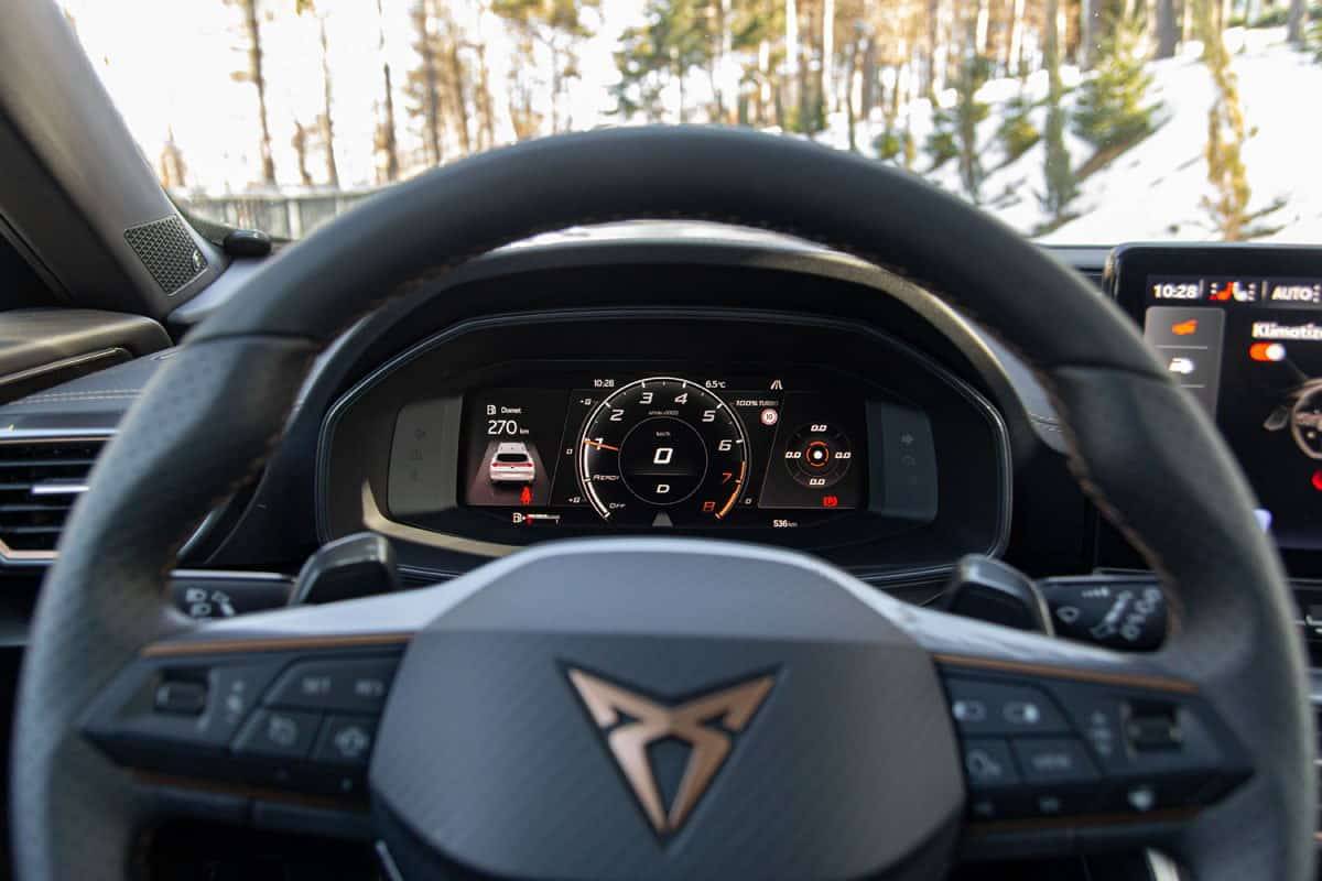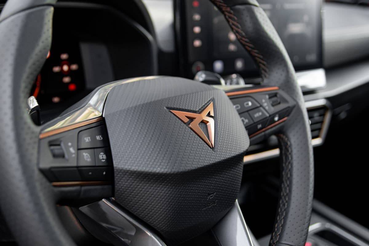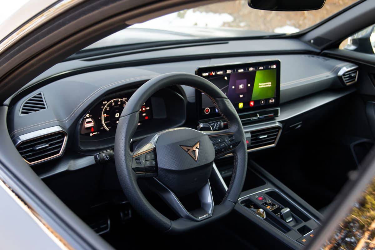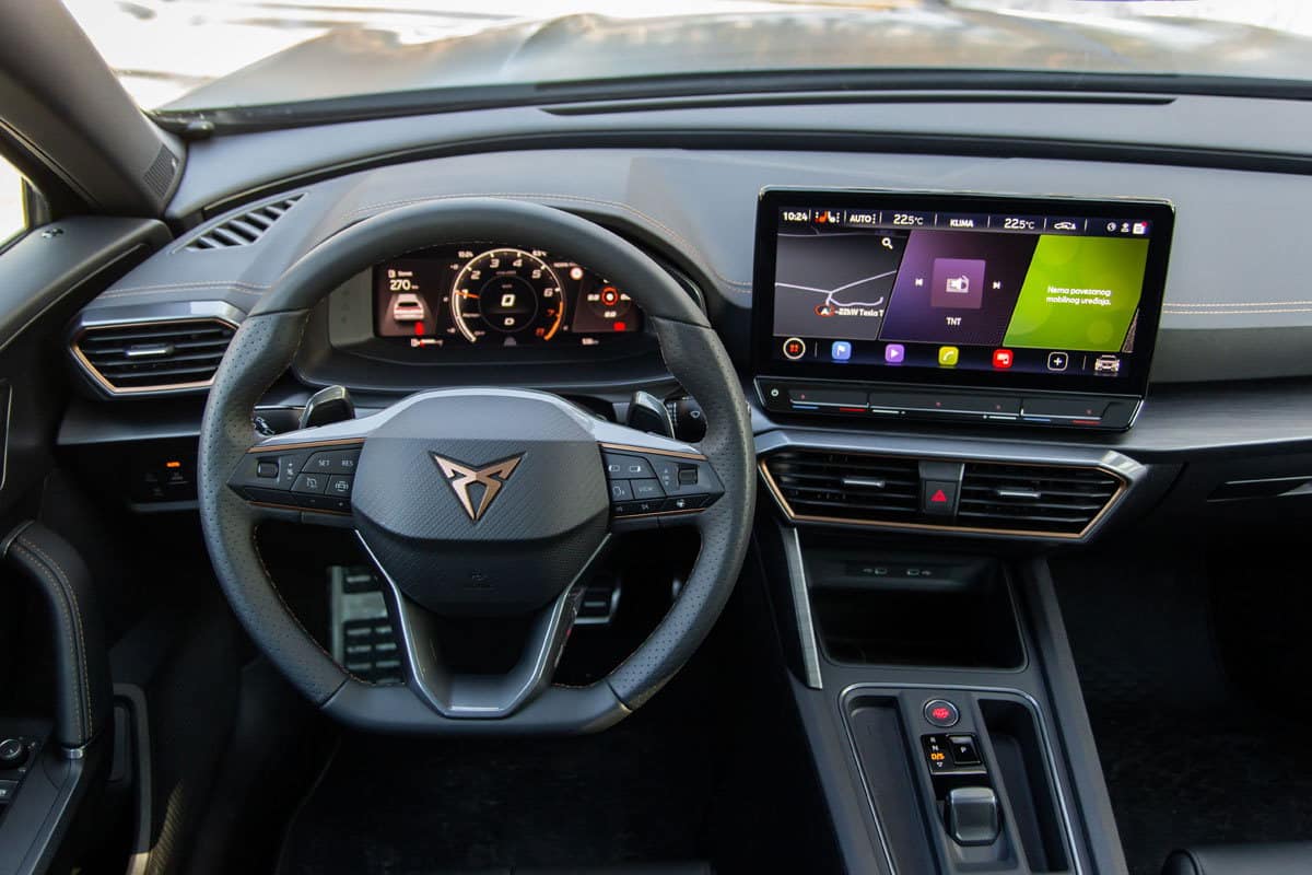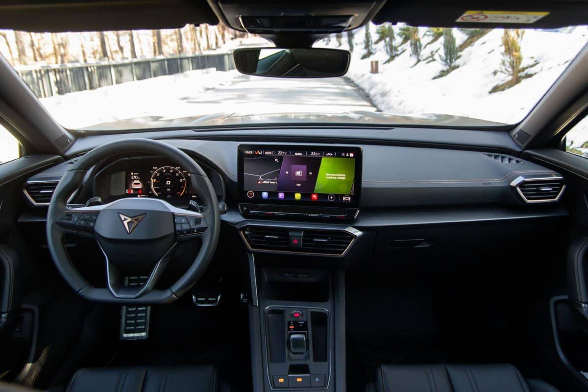 Unutrašnjost Formentora jednako je modernog dizajna kao što je i vanjski dio. Grupacijski koncept rasporeda svih elemenata odmah je vidljiv, međutim sve je složeno u modernom izdanju sa puno lijepih detalja koji ostavljaju utisak sportskog duha i pomalo prestiža. Ulaskom u putničku kabinu odmah vidite klasične pozicije upravljača, digitalnog kombinovanog instrumenta, centralnog ekrana Infotainment sistema i malu ručicu mjenjača. Da, kažemo klasične pozicije, jer ta jednom dobro pogođena kombinacija nema dobru alternativu! Skrojena je tako da vozači bez obzira na visinu mogu pronaći idealnu poziciju za vožnju u kojoj neće biti kompromisa između udobnosti i preglednosti.