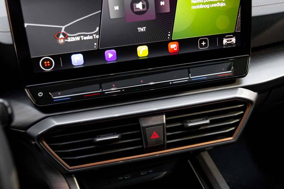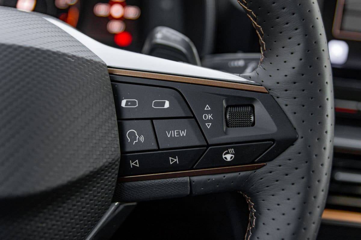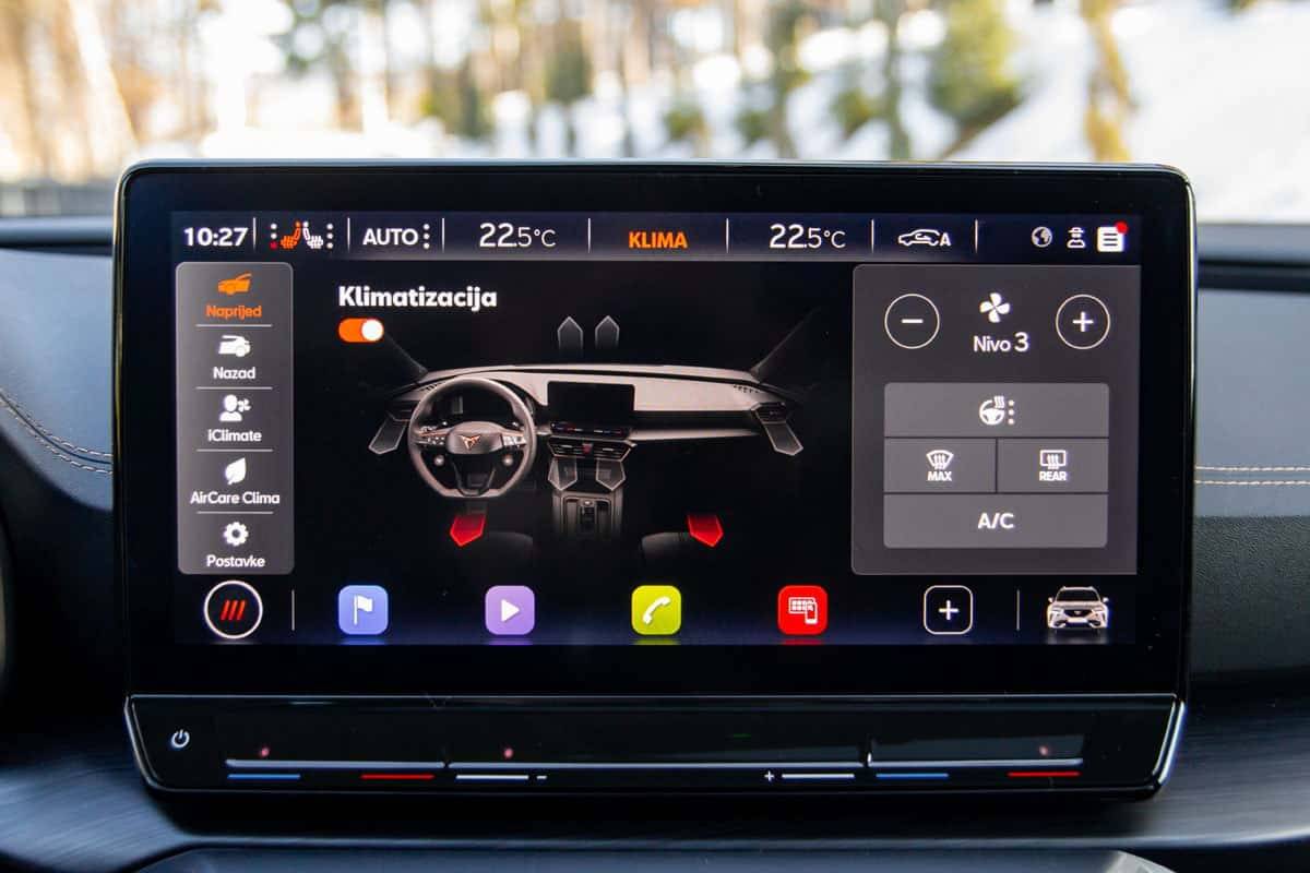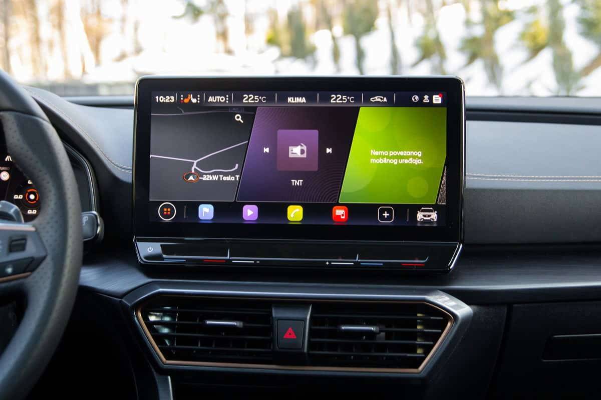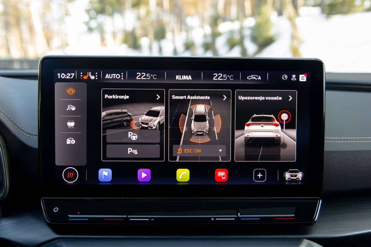 Unutrašnjost Formentora jednako je modernog dizajna kao što je i vanjski dio. Grupacijski koncept rasporeda svih elemenata odmah je vidljiv, međutim sve je složeno u modernom izdanju sa puno lijepih detalja koji ostavljaju utisak sportskog duha i pomalo prestiža. Ulaskom u putničku kabinu odmah vidite klasične pozicije upravljača, digitalnog kombinovanog instrumenta, centralnog ekrana Infotainment sistema i malu ručicu mjenjača. Da, kažemo klasične pozicije, jer ta jednom dobro pogođena kombinacija nema dobru alternativu! Skrojena je tako da vozači bez obzira na visinu mogu pronaći idealnu poziciju za vožnju u kojoj neće biti kompromisa između udobnosti i preglednosti.