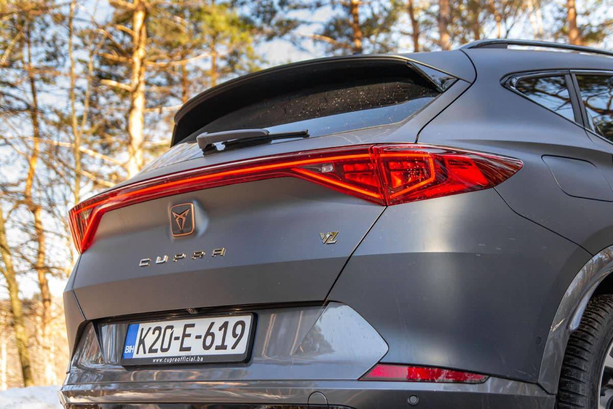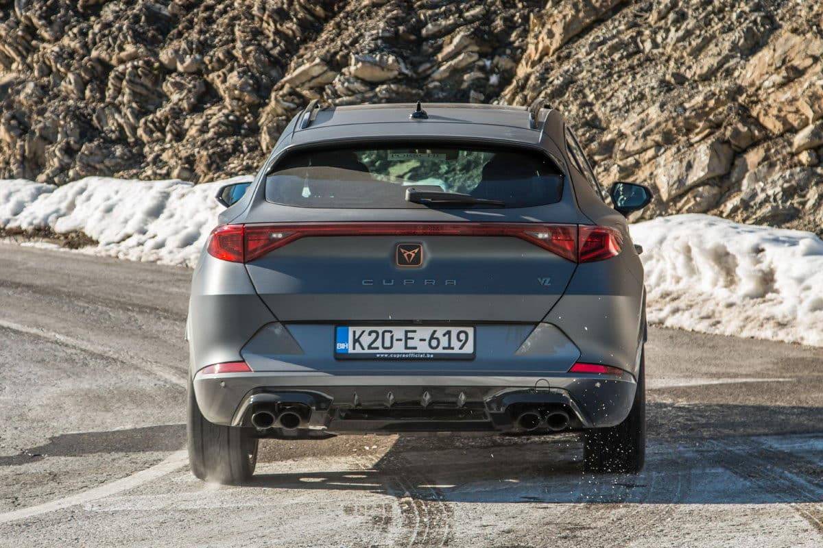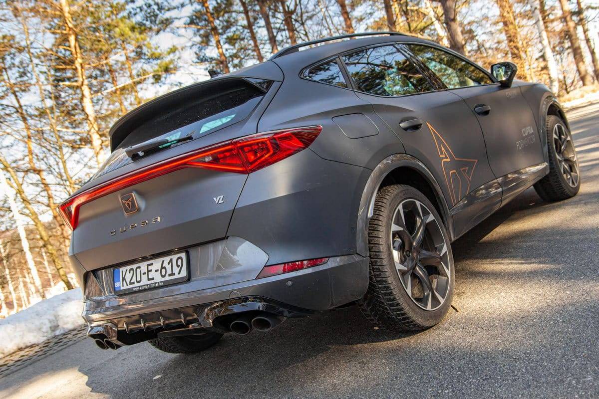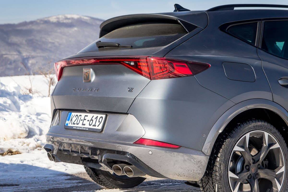 Jedna od karakteristika Formentora je da vanjski dizajn samo malim detaljima otkriva o kakvoj izvedbi je riječ, a zapravo to ćete najlakše otkriti pogledom na zadnji dio automobila. Formentor VZ najlakše ćete prepoznati po četiri velike ispušne cijevi. One izlaze iz dosta tankog zadnjeg difuzora koji je sastavni dio zadnjeg odbojnika, što vas rješava prevelike brige od oštećenja ako se odlučite na offroad vožnju.