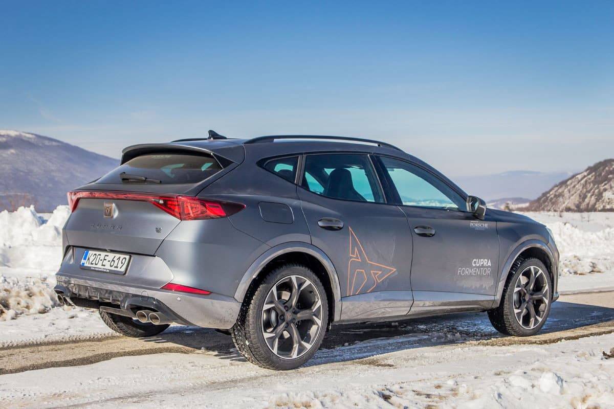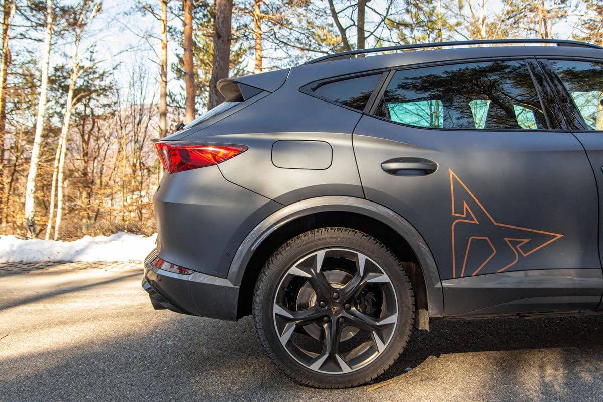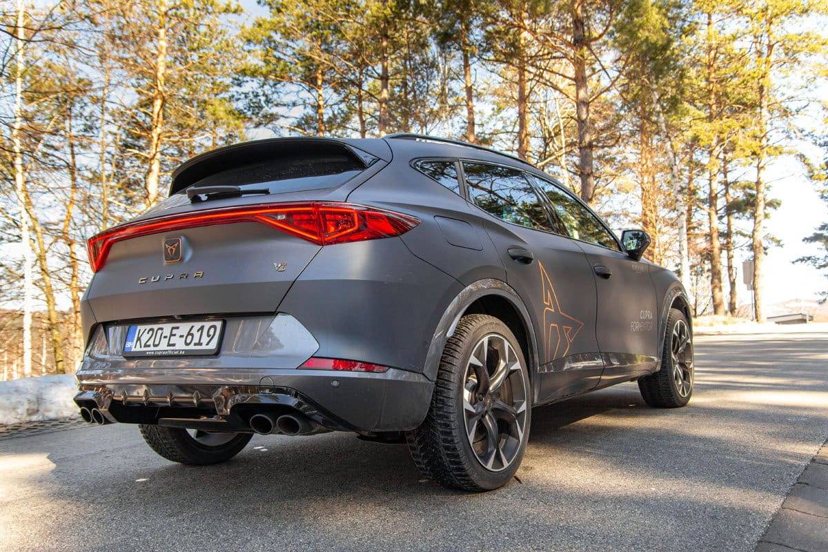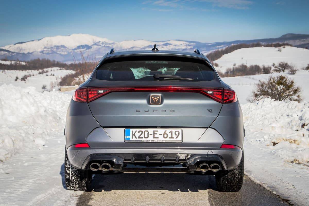 Jedna od karakteristika Formentora je da vanjski dizajn samo malim detaljima otkriva o kakvoj izvedbi je riječ, a zapravo to ćete najlakše otkriti pogledom na zadnji dio automobila. Formentor VZ najlakše ćete prepoznati po četiri velike ispušne cijevi. One izlaze iz dosta tankog zadnjeg difuzora koji je sastavni dio zadnjeg odbojnika, što vas rješava prevelike brige od oštećenja ako se odlučite na offroad vožnju.