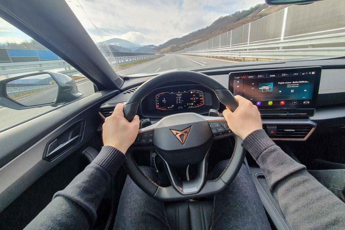 Kada bolje upoznate limite Formentora VZ onda ga možete voziti brzo i po krivinama jer ćete tada voziti tik do njegove granice proklizavanja, a one su tu odmah negdje za petama klasičnih sportskih kompakta. Ako se odlučite na ispaljivanja iz mjesta, preko Infotainment ekrana u postavkama automobila aktivirate Esc Sport i automobil aktivira Launch Control. Od 0 do 100 km/h ide za 4,9 sekundi, a ako gas zadržite do kraja postignut ćete elektronski limitiranu maksimalnu brzinu od 250 km/h.