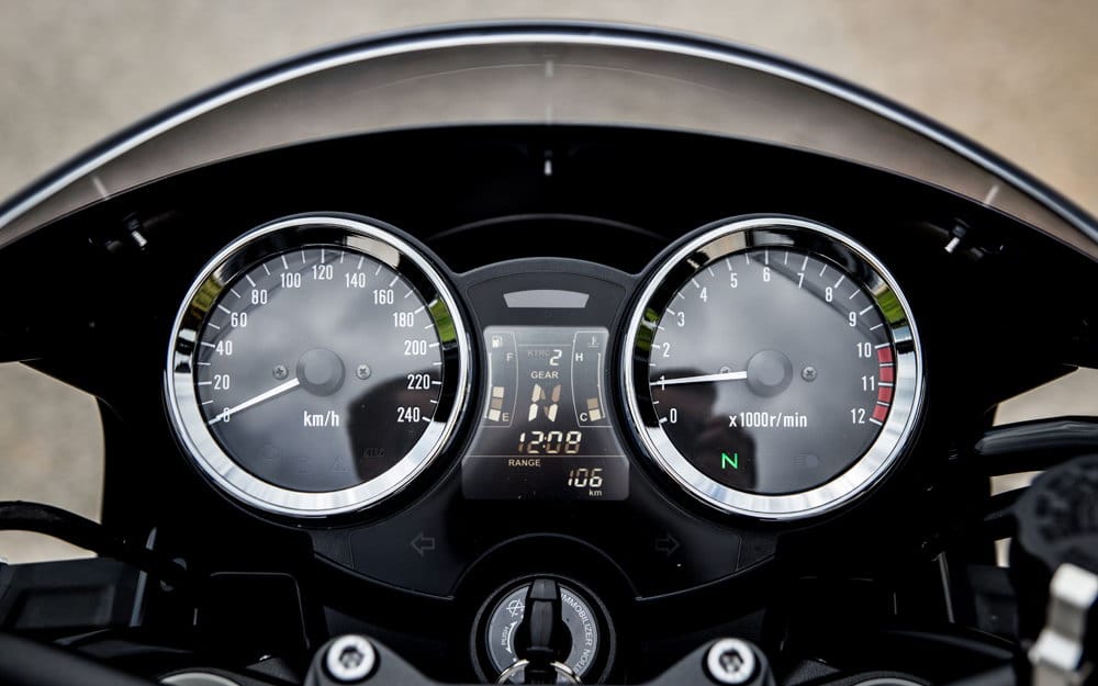 Retro geni u njegovom dizajnu evoluirali su u dovoljnoj mjeri kako bi se prilagodili modernim tehnologijama poput punog LED prednjeg i zadnjeg svjetla. Sve ostalo je prilagođeno retro genima, pa tako imamo analogne pokazivače brzine i broja okretaja motora, ali koje opet dijeli mali ekran koji pokazuje modove vožnje i druge informacije sa putnog računara.