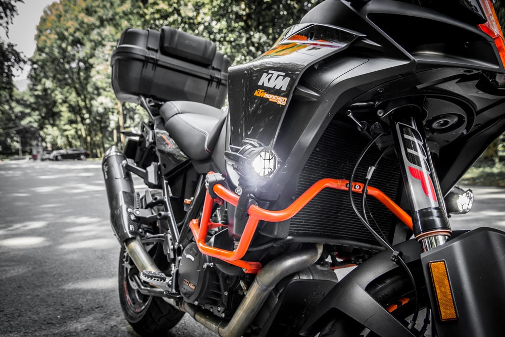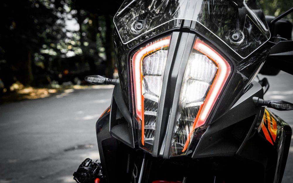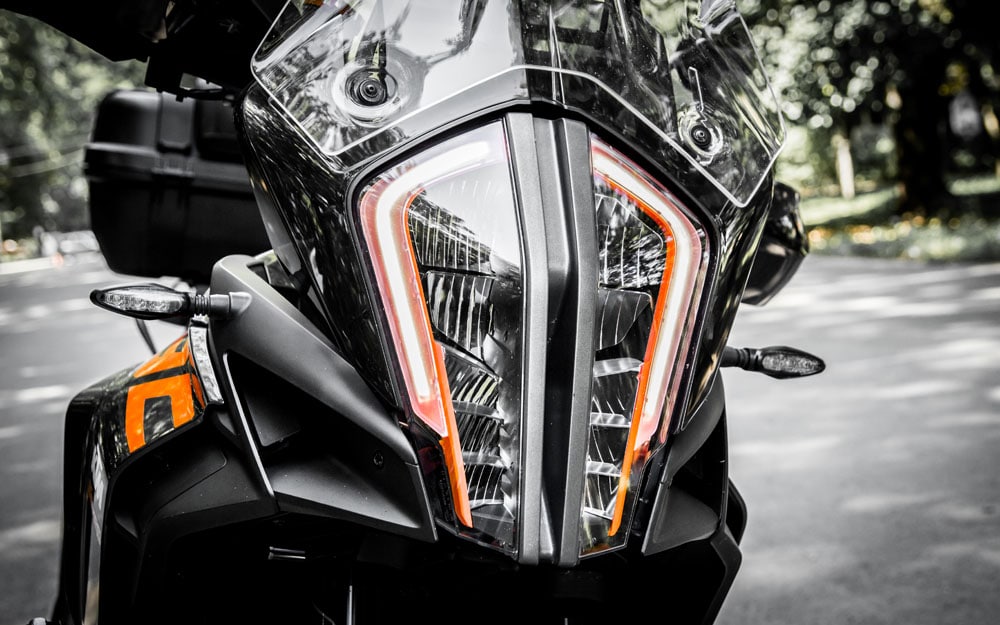 Osim što svjetlosna grafika izgleda veoma moćno, ona ima i odličnu funkcionalnost. Kod modela KTM 1290 Super Adventure ugrađena su puna LED svjetla koja imaju mogućnost prilagođavanja svjetlosnog snopa na način da se svjetlost pojačava u pravcu skretanja.
