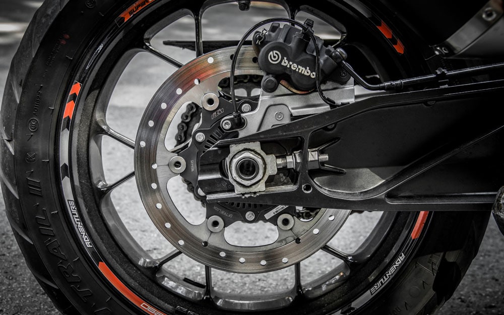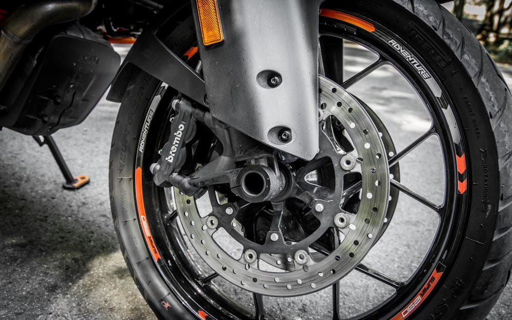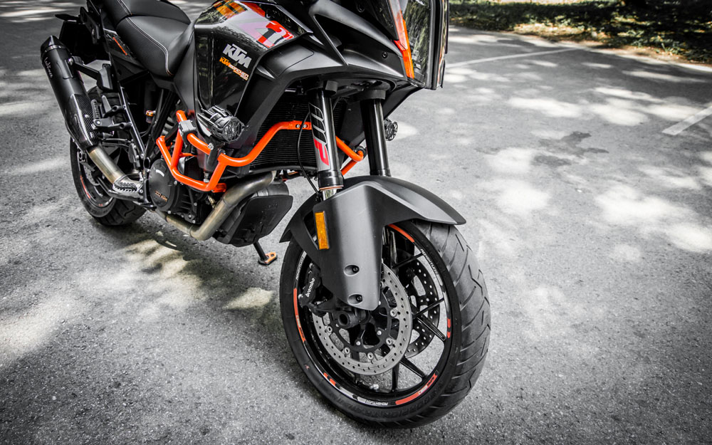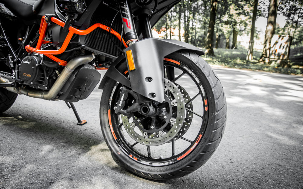 Gledajući KTM 1290 Super Adventure S sa prednje ili bočne strane jasno vam je da se radi o gorostasu koji već svojom pojavom izaziva poštovanje. KTM-ova grdosija postavljena je na 19 inčne livene ALU točkove sa gumama veličine: prednja 120/70 ZR 19 i zadnja 170/60 ZR 17.
