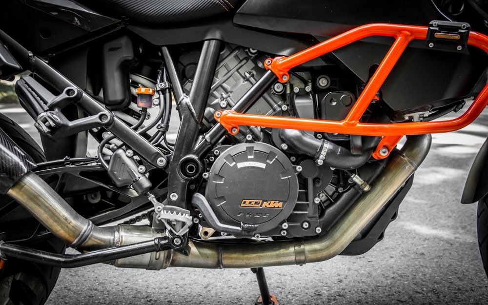 KTM 1290 Super Adventure S s razlogom smo nazvali „razjareni bik“ jer se tako i ponaša. Već pri startanju agregata prisutno je nervozno roktanje, posebno ako još fabrički lonac zamijenite nekim drugim poput Leo Vincea. Vožnja će vam izmamiti osmijeh na lice jer motocikl poskakuje već iz niskih obrtaja. Isto možete očekivati i na 120 km/h ako odvijete ručicu gasa do kraja – čeka vas momentalna eksplozija snage. Ovako nešto BMW GS Adventure definitivno nema!