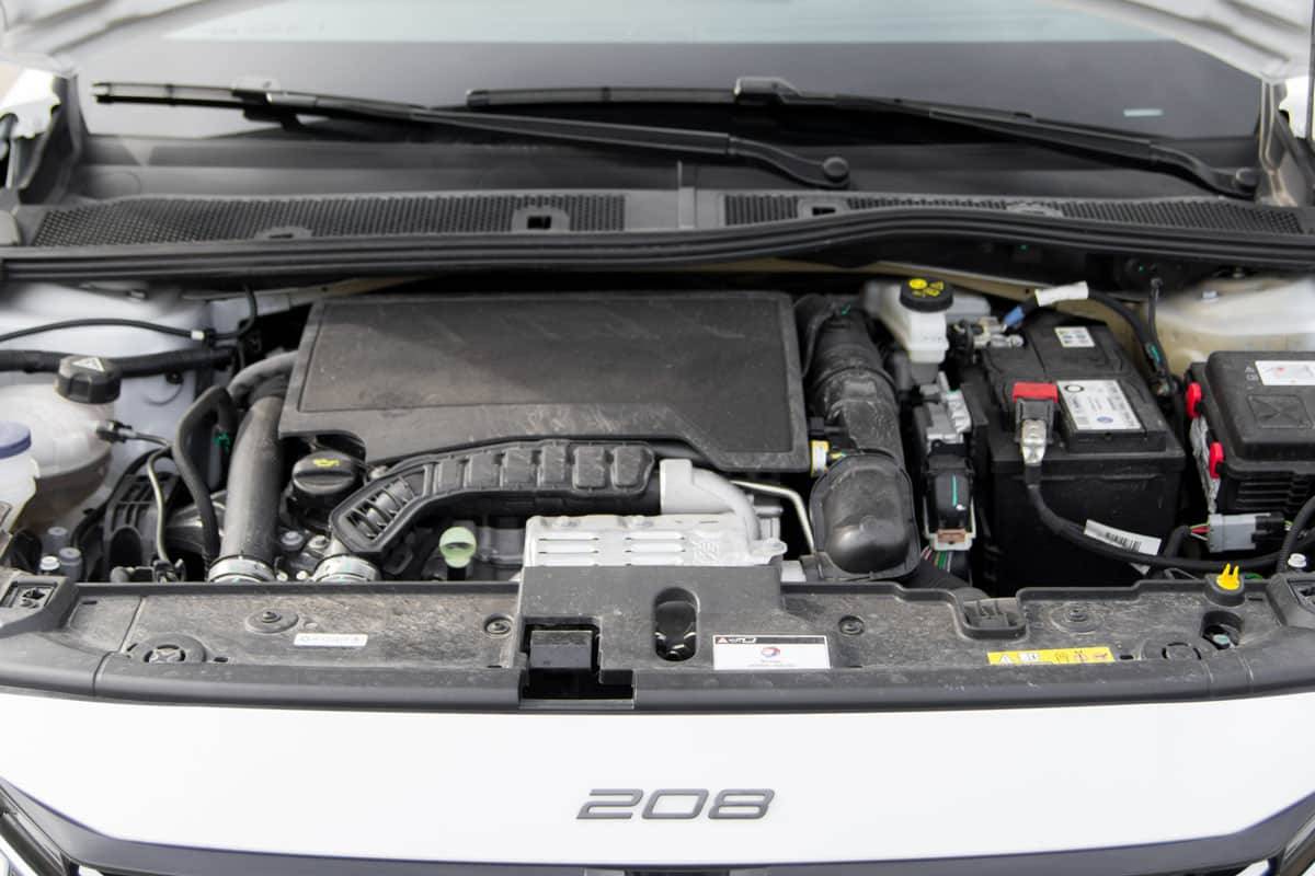 Testni model pokretao je 1.2 litreni trocilindarski PureTech turbo motor sa 100 KS pri 5.500 okr/min i 205 Nm okretnog momenta pri 1.750 okr/min. Snaga motora se prenosi na prednje točkove preko šestostepenog ručnog mjenjača čija ručica ima nešto duži hod, ali je veoma precizan. U ovoj kombinaciji motora i mjenjača novi 208 od 0 do 100 km/h ubrzava za 10,1 sekundi i postiže maksimalnu brzinu od 194 km/h. U odnosu na prethodnu generaciju ubrzanje je sporije za 0,2 sekunde ali je maksimalna brzina povećana za 6 km/h.
