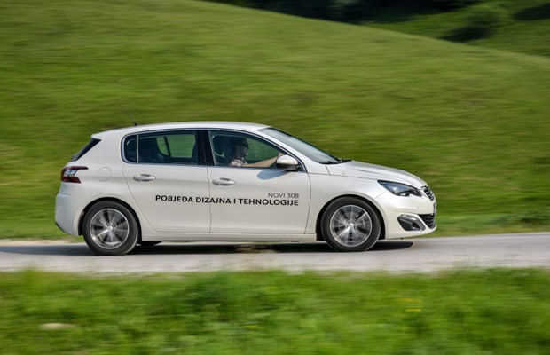 Ovjes je kreiran tako da bude francuski udoban ali istovremeno da krivine savladava poput nabrijanog „sportaša“, pa je zaista bilo teško sa 308-icom dostići krajnje granice sigurnog držanja, skoro pa nemoguća misija. Naročito ako ovome dodamo sjajni upravljački sistem koji reaguje ekstremno precizno i direktno – nema kraja zabavi! Testni model je bio pokretan provjerenim i unaprijeđenim 1.6-litrenim eHDI FAP dizelskim motorom koji razvija maksimalnih 115 KS, uparen sa 6-stepenim manualnim mjenjačem, predstavljaće vjerovatno najčešći izbor kupaca. Bitno je naglasiti da je ovo bio model iz 2014-te koji zadovoljava Euro 5 norme, dok modeli od 2015-te zadovoljavaju Euro 6 norme o izduvnim gasovima, te su dodatno „navijeni“ na 120 KS i pri tome troše još manje goriva.
