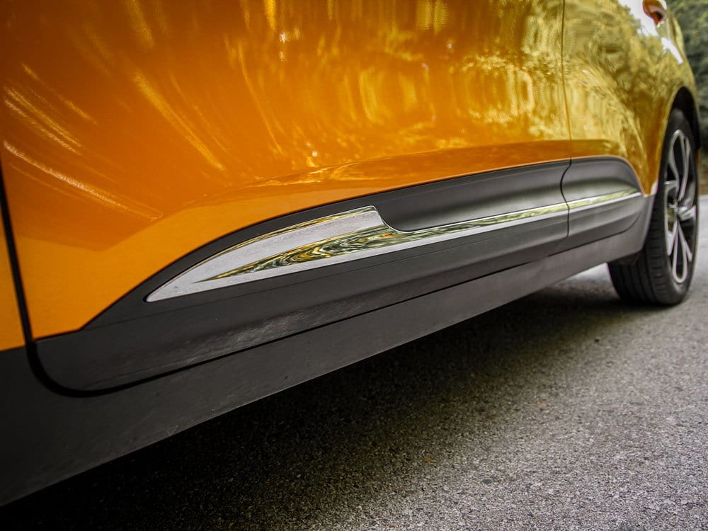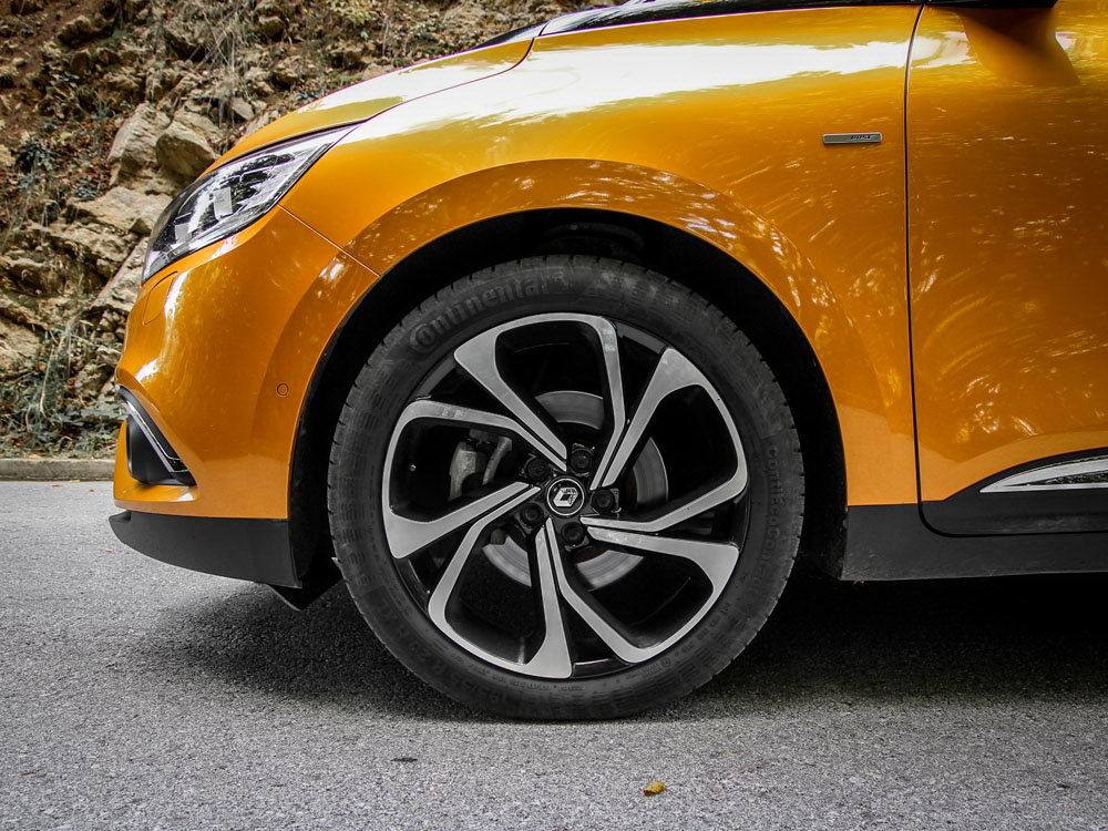 Boljim poznavaocima Renaulta ovo neće biti ništa čudno jer je francuski proizvođač poznat po postavljanju automobila na ne standardne veličine guma. U tome nema ništa loše sve do momenta kada trebate nabaviti novi set guma, a tada shvatite da posebna veličina ima posebnu cijenu. U donji dio automobila ubačena je zaštitna plastika, sličnog izgleda baš kao kod crossover modela, pa povišena silueta karoserije i ovaj zaštitni element ostavljaju utisak da je novi Scénic mješanac modernog MPV-a i crossovera.