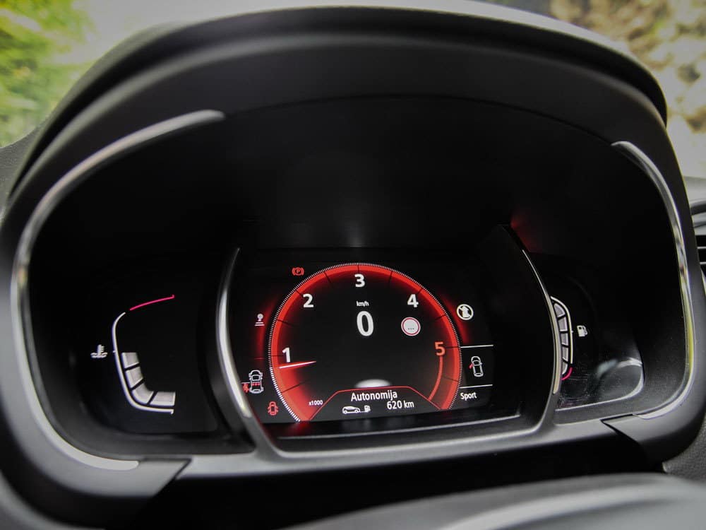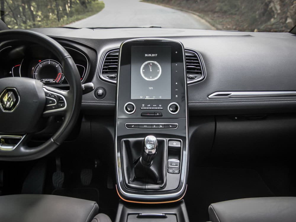 Testni Scénic bio je opremljen sa bogatim paketom opreme Bose kao i dodatnom opremom, pa tako tokom testa na raspolaganju smo imali multimedijalni sistem R-Link 2, Head-up ekran, sistem za nadzor mrtvog ugla, sistem za pomoć pri parkiranju 360°, sistem za parkiranje slobodne ruke Easy Park Assist + kamera za vožnju unatrag, grijana prednja sjedišta, sistem za čišćenje prednjih svjetala, aktivni tempomat, sistem za održavanje sigurnosnog razmaka, panoramski stakleni krov, itd.