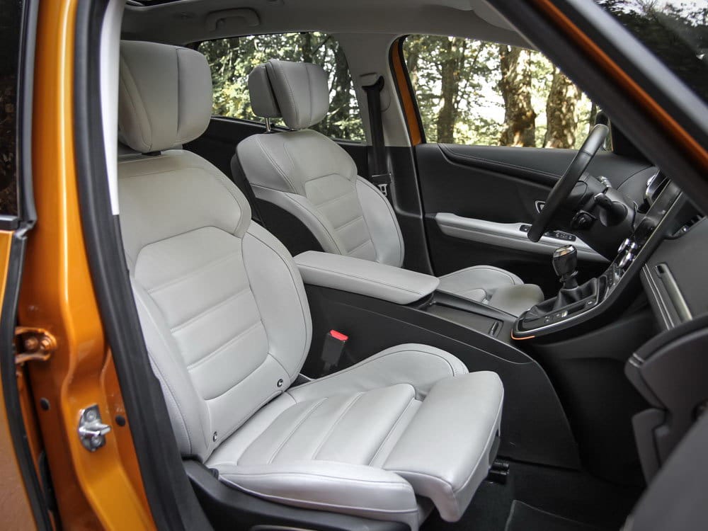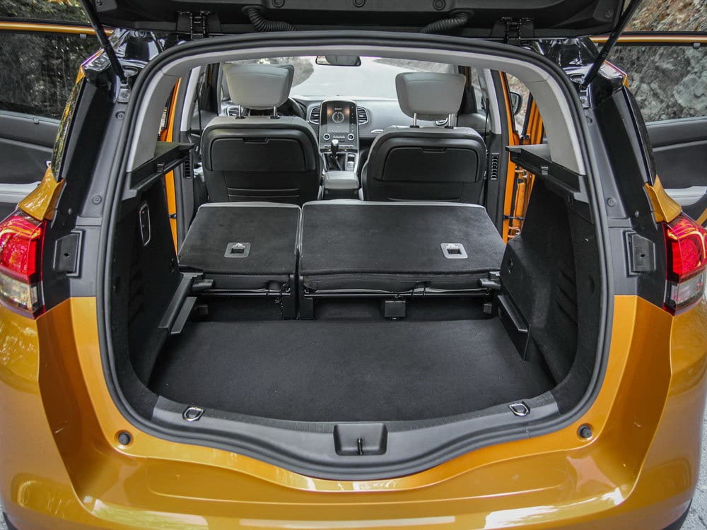 Za razliku od zadnje kupe, vozač i suvozač bez obzira na njihovu visinu imaju sasvim dovoljno prostora u svim smjerovima. Za upravljačem idealna vozačka pozicija brzo se pronalazi, a udobna sjedišta koja su u bogato opremljenom modelu imala i masažu za vozača i suvozača zaslužna su za smanjeni umor tokom dugih putovanja. Renault je kao i obično akcenat stavio više na udobnost nego na bočnu potporu jer logičkim razmišljanjem dolazimo do zaključka da porodični vozač neće juriti zavojima sa MPV automobilom.