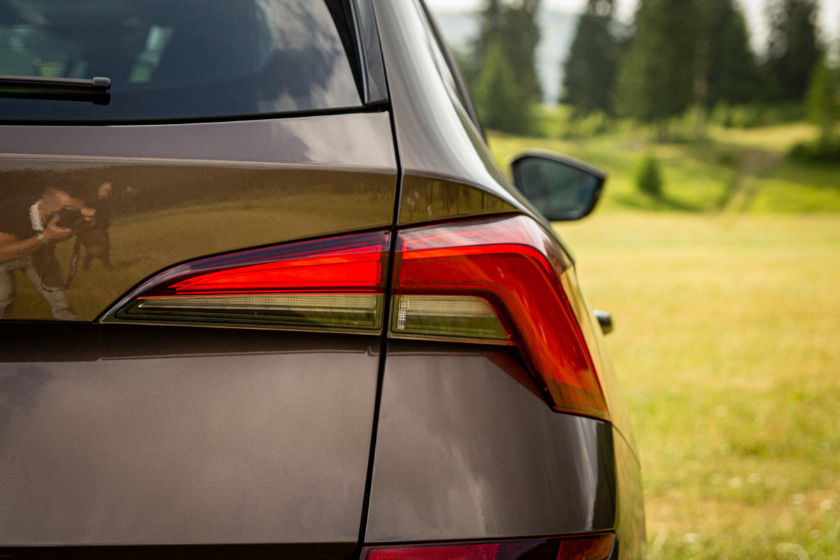 Zadnji dio automobila elegantno je dizajniran na kojem se nalazi novi natpis ŠKODA koji se proteže između svjetlosne grupe koja nosi dizajnersku genetiku modela SCALA. Kao i naprijed, tako i nazad, u zadnjem braniku nalazi se dodatak u boji brušenog aluminijuma koji imitira difuzor.