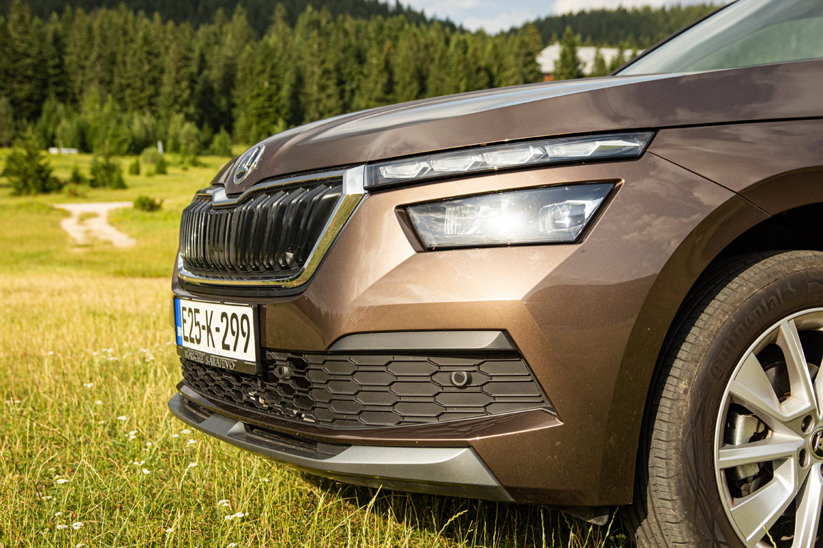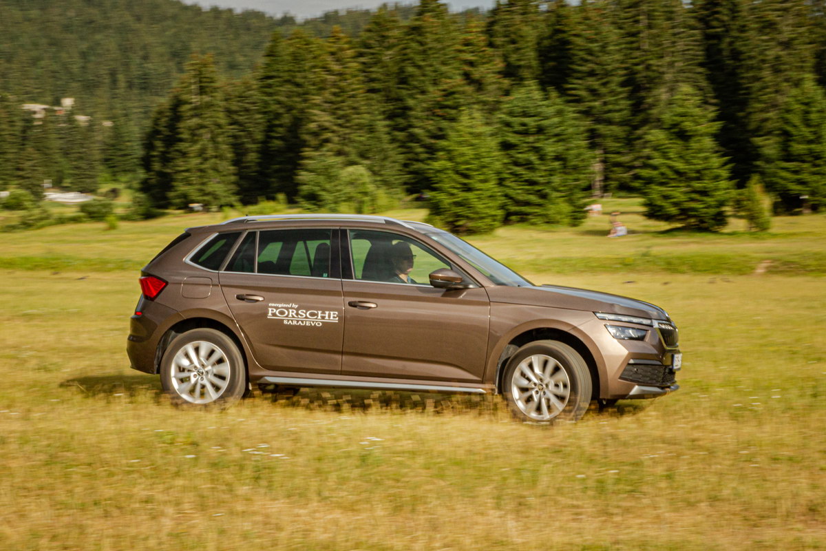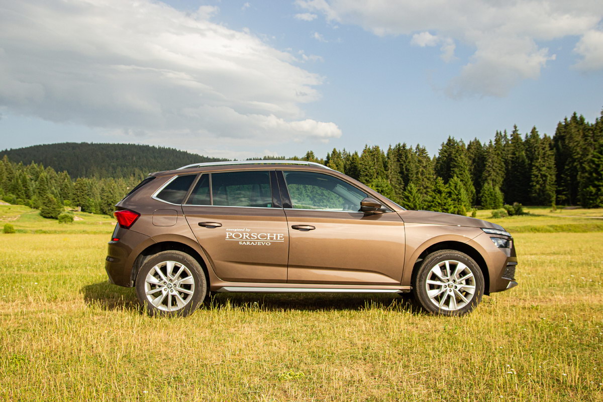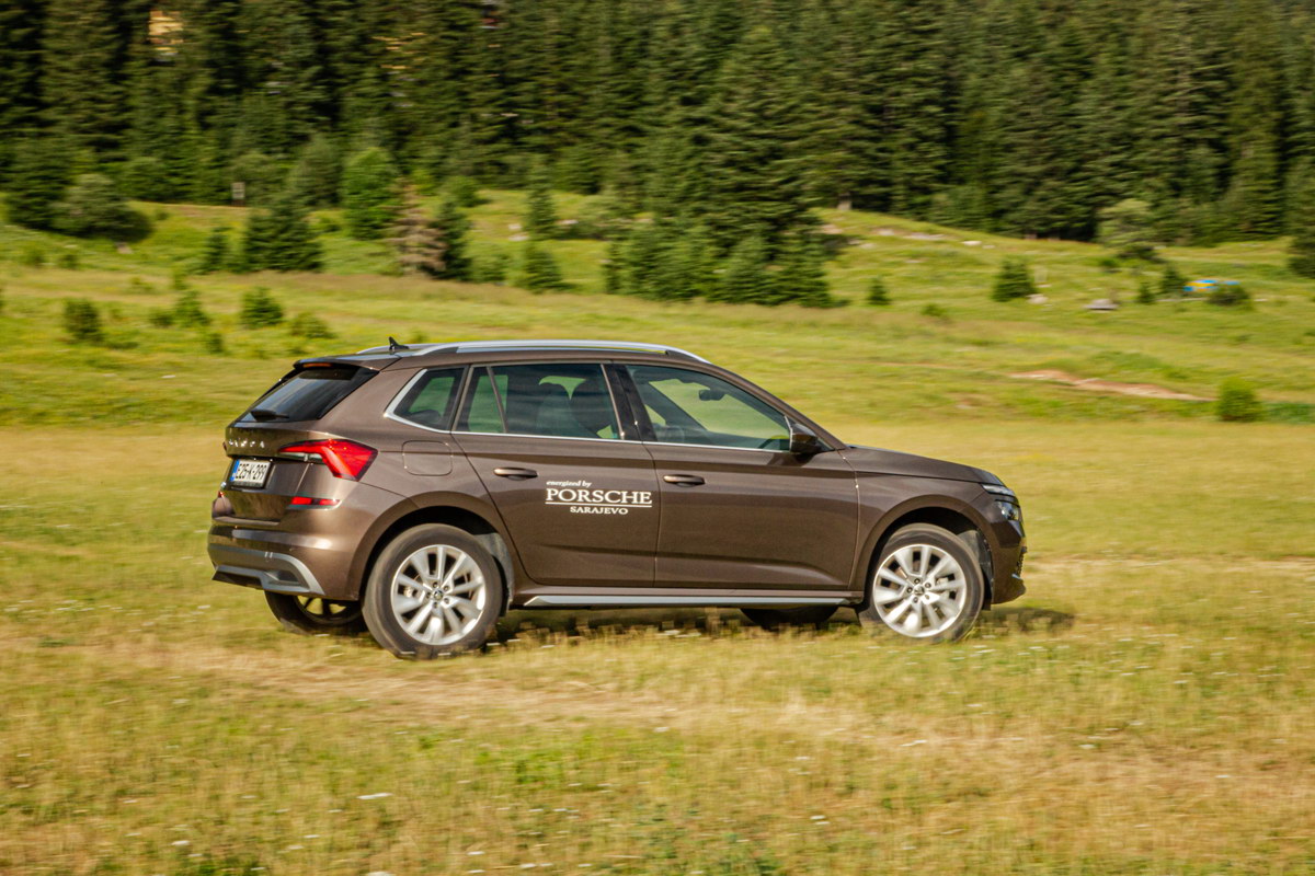 Kao opcija nude se i točkovi od 18 inča, ali baš za ove od 17 inča smatramo da su optimalne za ovaj automobil, posebno ako se mislite povremeno upustiti u manju offroad avanturu. Kada je riječ o vožnji van uređenih puteva treba reći da KAMIQ ima pogon samo na prednje točkove i da 4×4 nije ponuđen ni kao opcija. Uz korisne plastične zaštitne obloge i povišenu karoseriju ovaj automobil sposoban je upustit se u blage offroad avanture.