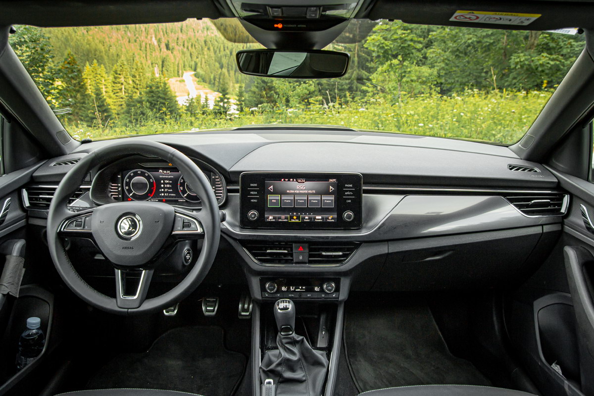 Testni KAMIQ može se pohvaliti preglednim digitalnim vozačkim okruženjem u kojem vozač ispred sebe ima digitalnu instrument tablu, a na sredini instrument table nalazi se veliki 8 inčni ekran infotainmenta. Komande klima uređaja ostale klasične i izdvojene ispod ventilacijskih otvora što nažalost postaje prava rijetkost u vremenu digitalizacije – ovakvo rješenje do sada nema kvalitetnu alternativu.