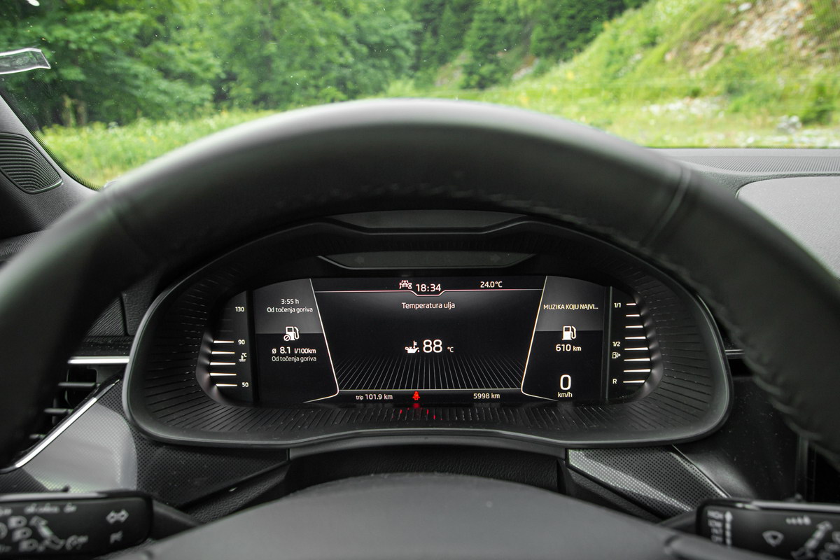 Digitalna instrument tabla u već poznatim grafičkim rješenjima nudi obilje korisnih informacija, kao i Infotainment sistem kroz čije se menije prolazi lahko i brzo. Sam rad oba sistema je dobar i pouzdan što je veoma važno – danas brojni modeli imaju dosta problema s pouzdanošću rada Infotainment sistema.